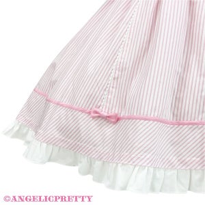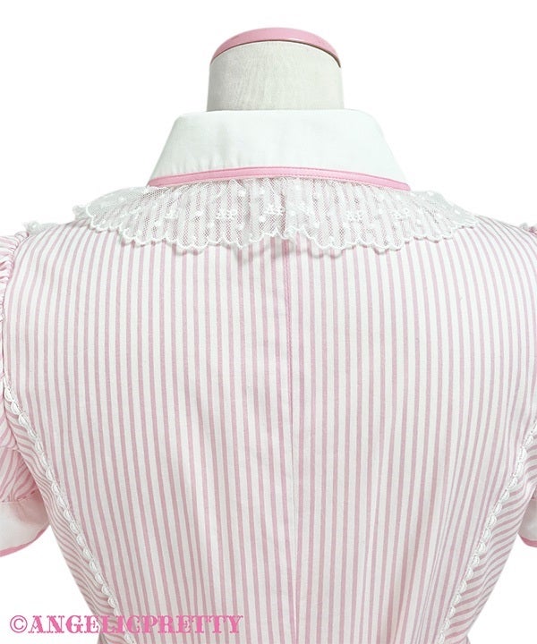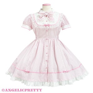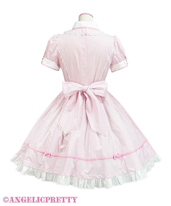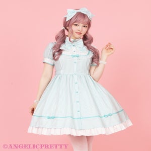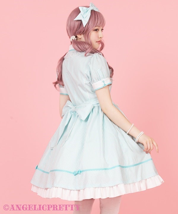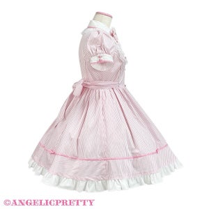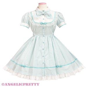 A cute one piece dress with a yoke that comes in a refreshing, summery striped fabric.