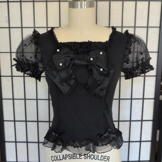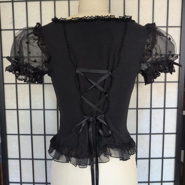 [Material] ·Body: Smooth ·Other Fabric: Organdy (100% polyester) ·Other Fabric: Heart Flocked tulle (100% nylon) [Lace] ·Tulle lace ·Chemical lace [Other] ·Satin ribbon ·Elastiziced cuffs