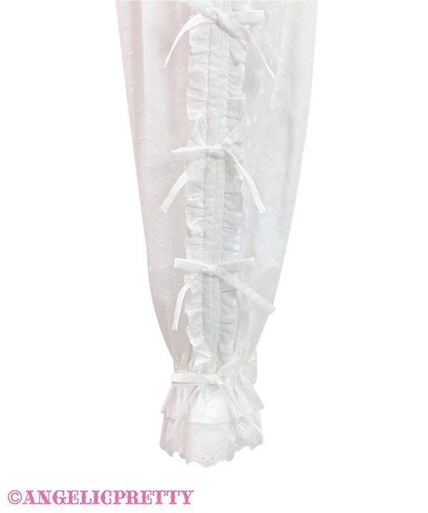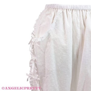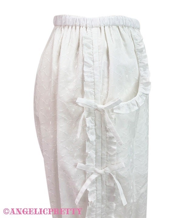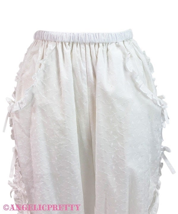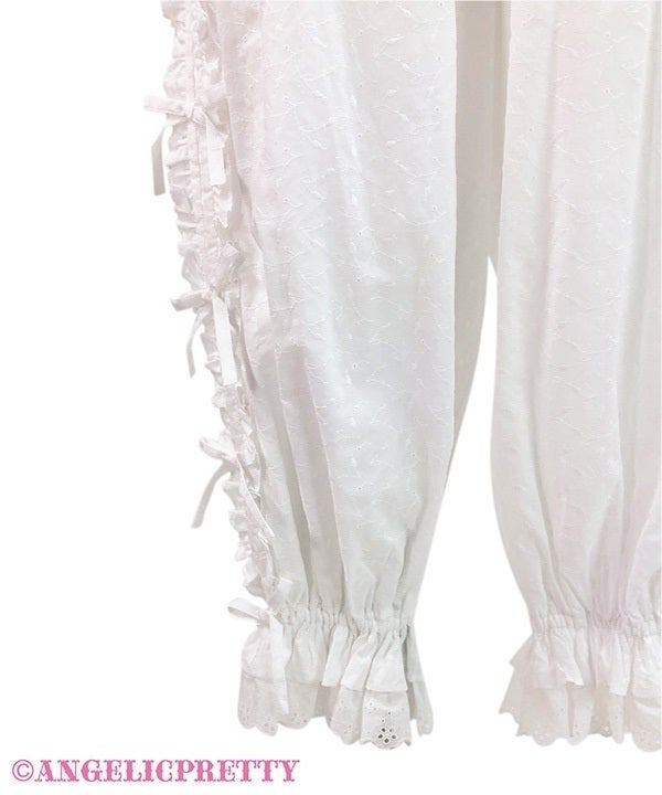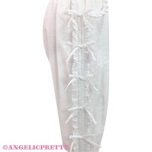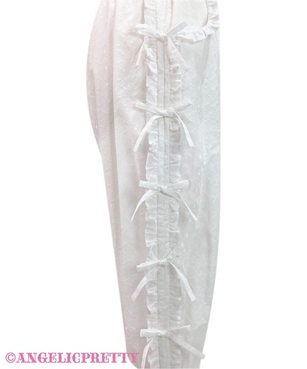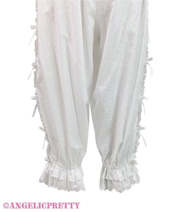 たくさんあしらわれた小さなリボン&フリルが可愛らしいロングドロワーズ。