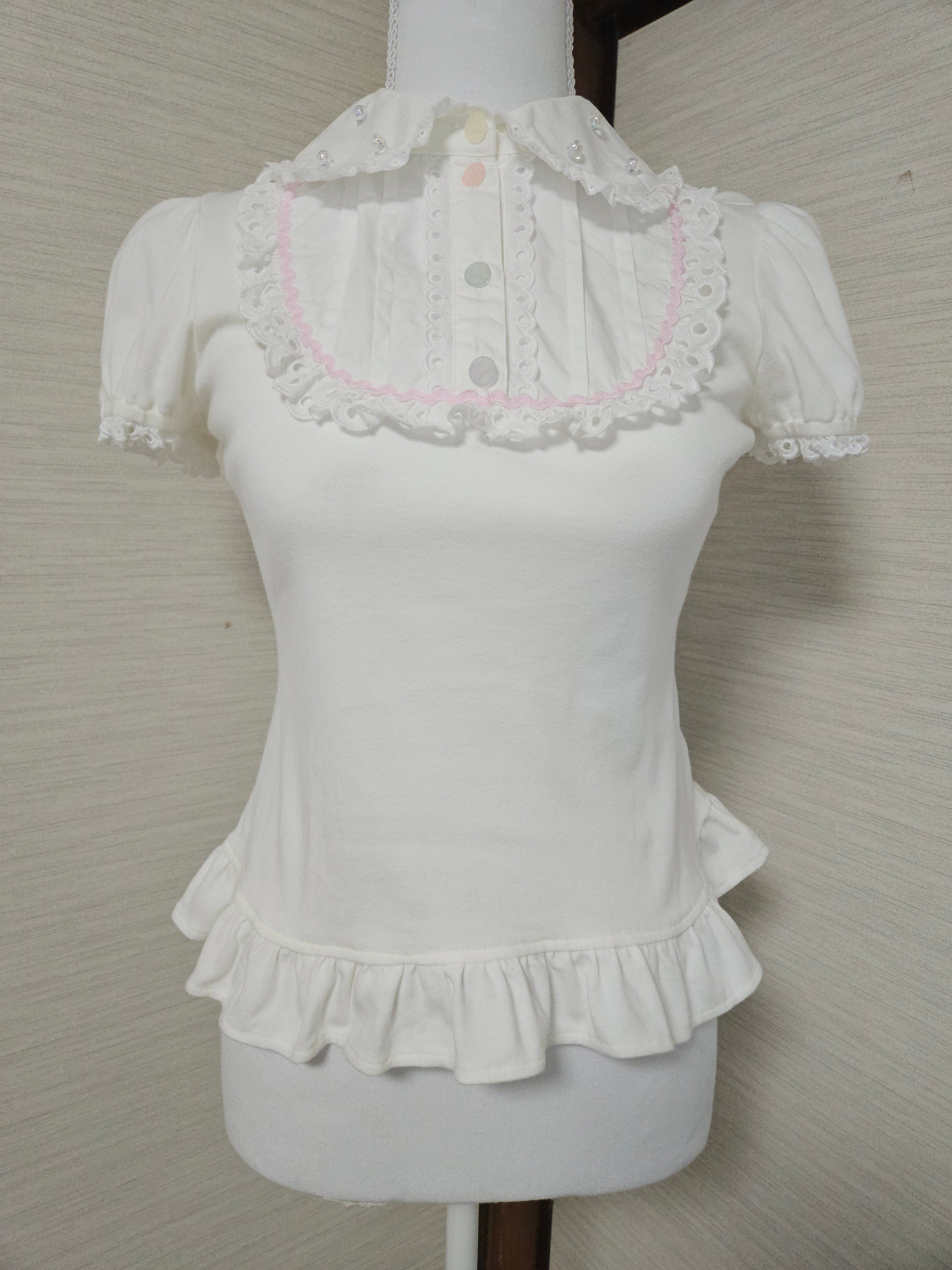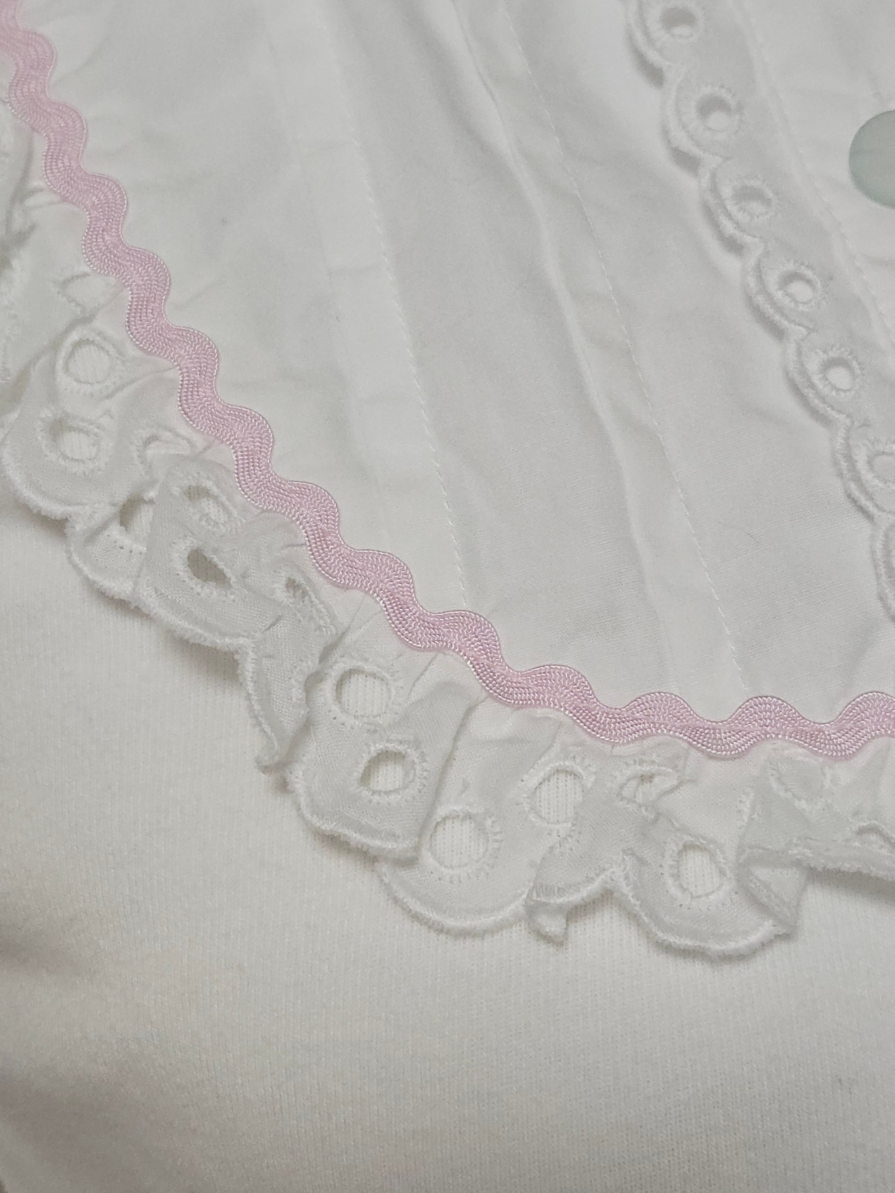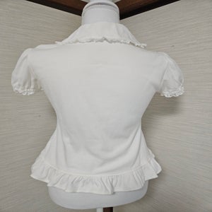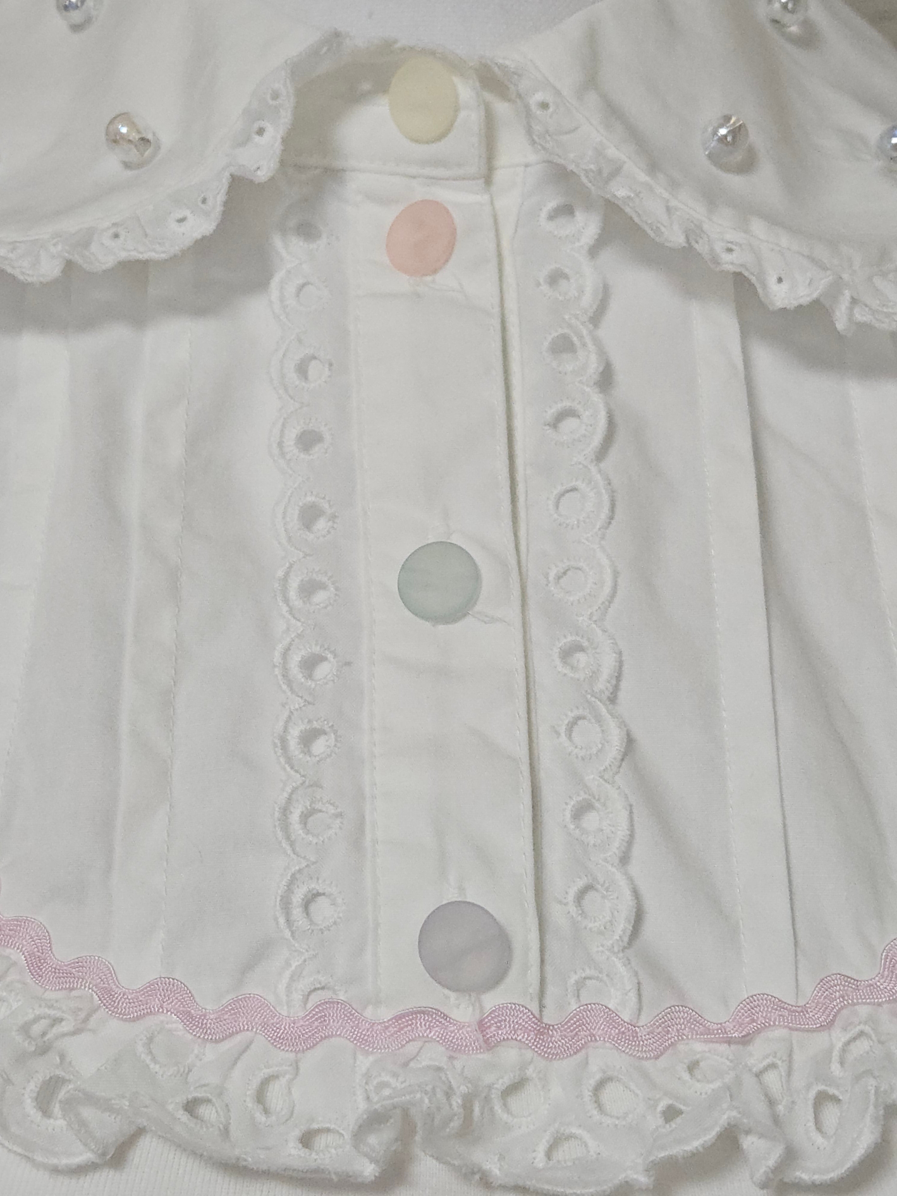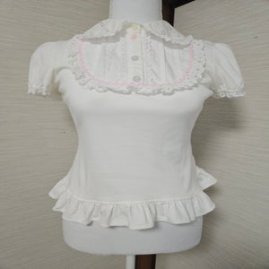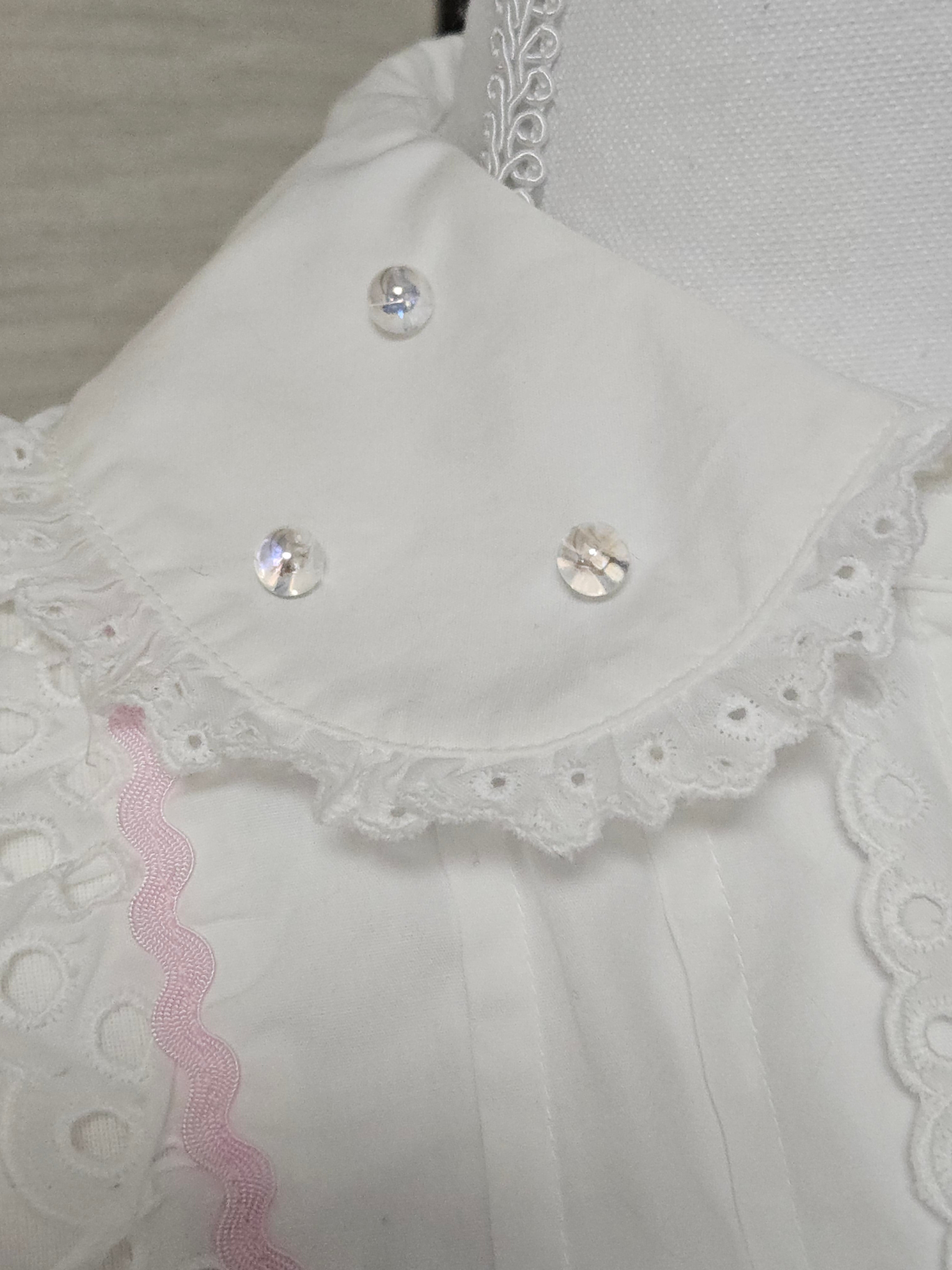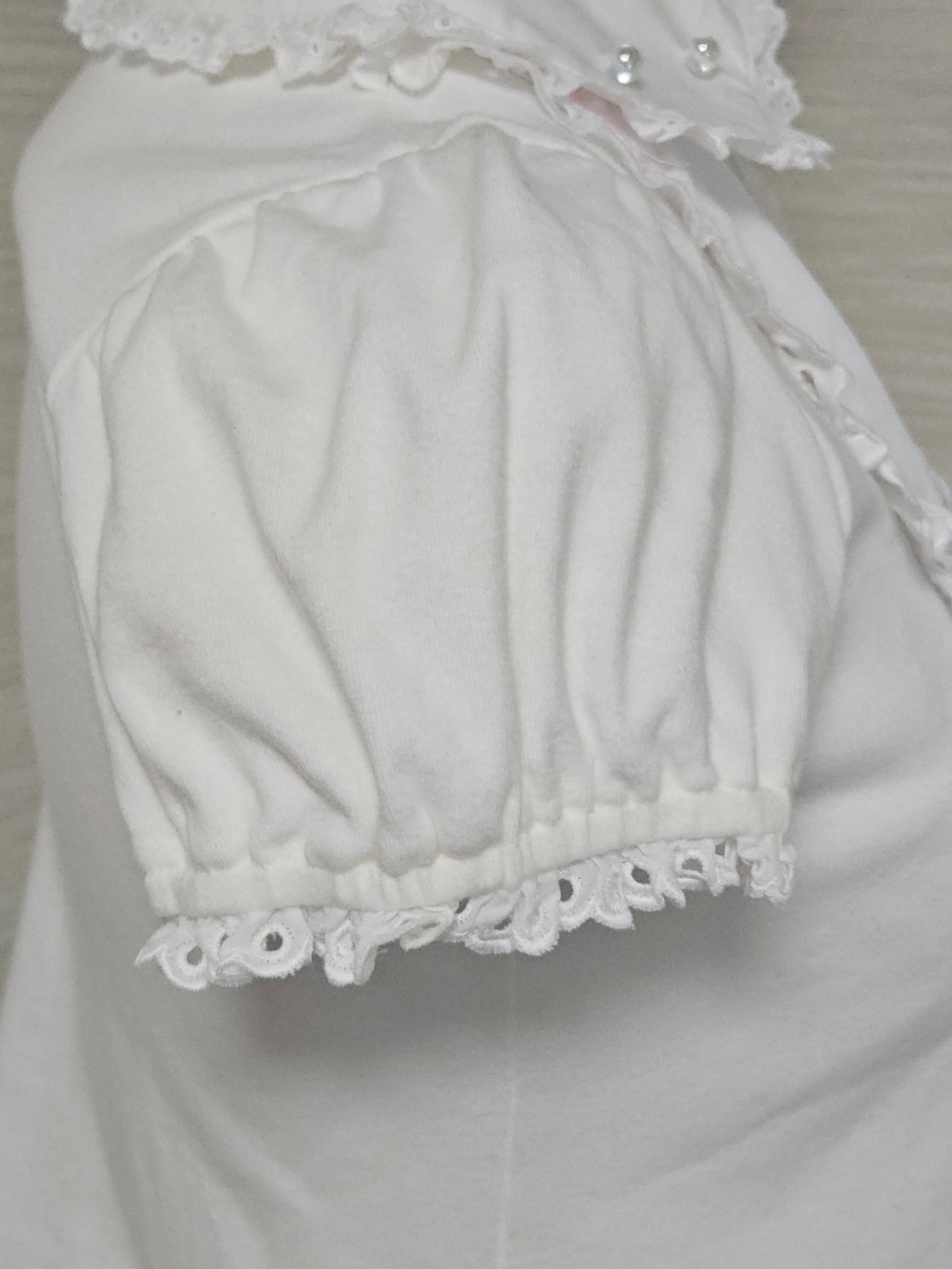 [Material] Body: Milling (100% cotton) Other: Broad (100% cotton) Lace: Cotton lace - cotton satin ribbon [Additional Measurement] Shoulder width: ~32cm Sleeve Length: ~15.5cm + ~2cm of lace Cuffs: ~28cm