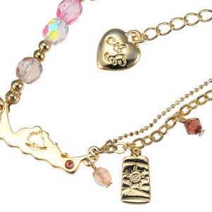 [Material] ·Zinc/Alloy [Other] ·Weigh: 5gr. ·Rhinestones ·Original logo heart charm ·Gold brackets ·Manufactured in South Korea. ·Angelic Pretty x Disney Collaboration. [Measurements] ·Chain Length: About 16cm ·Adjuster: About 3cm