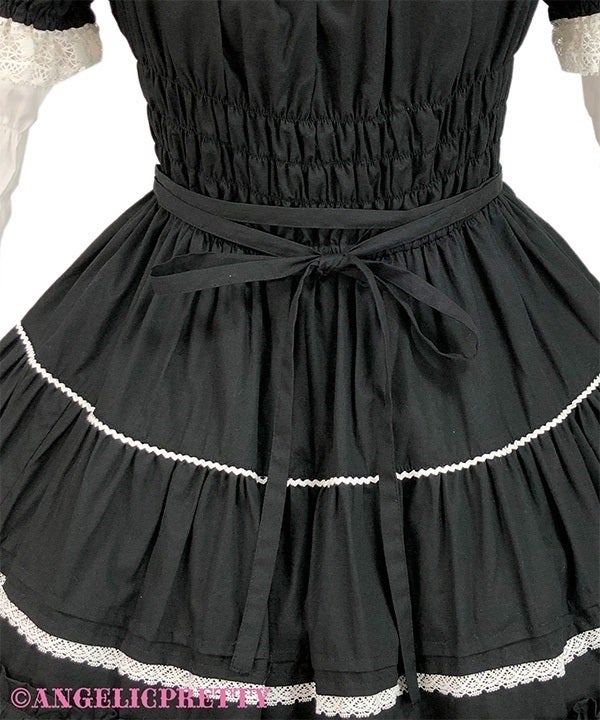 たっぷりと広がるティアードスカートのラインが美しいワンピース。