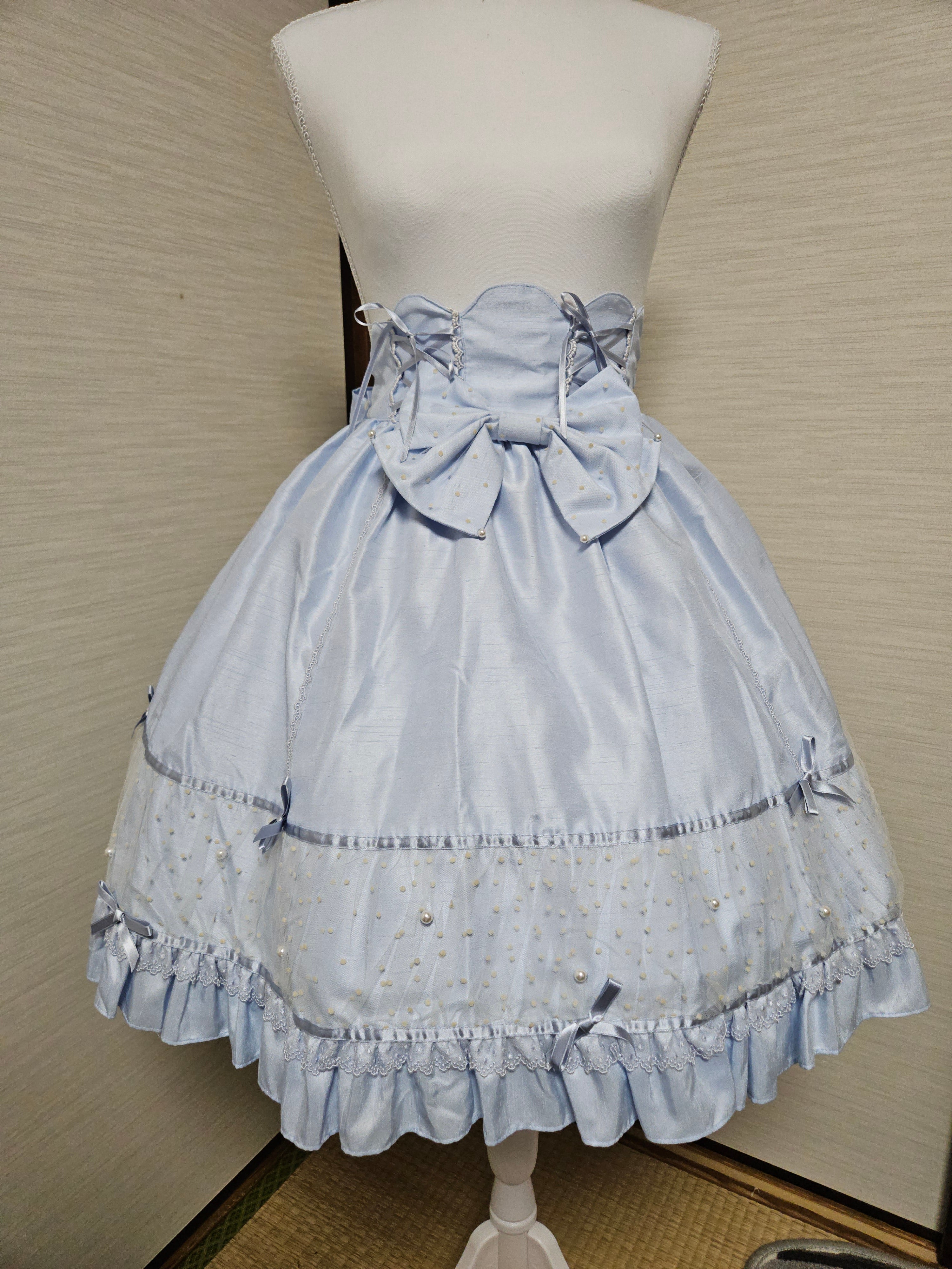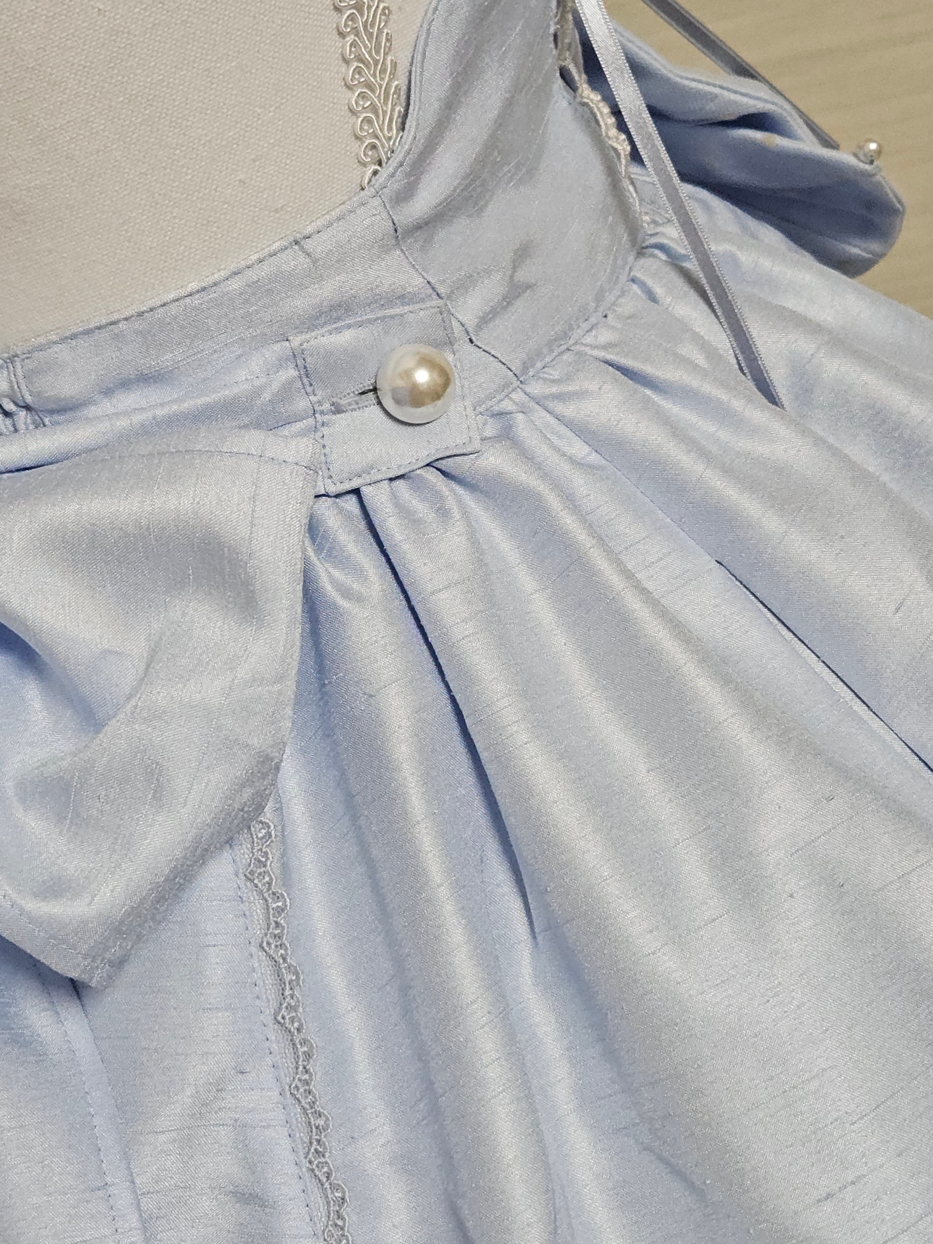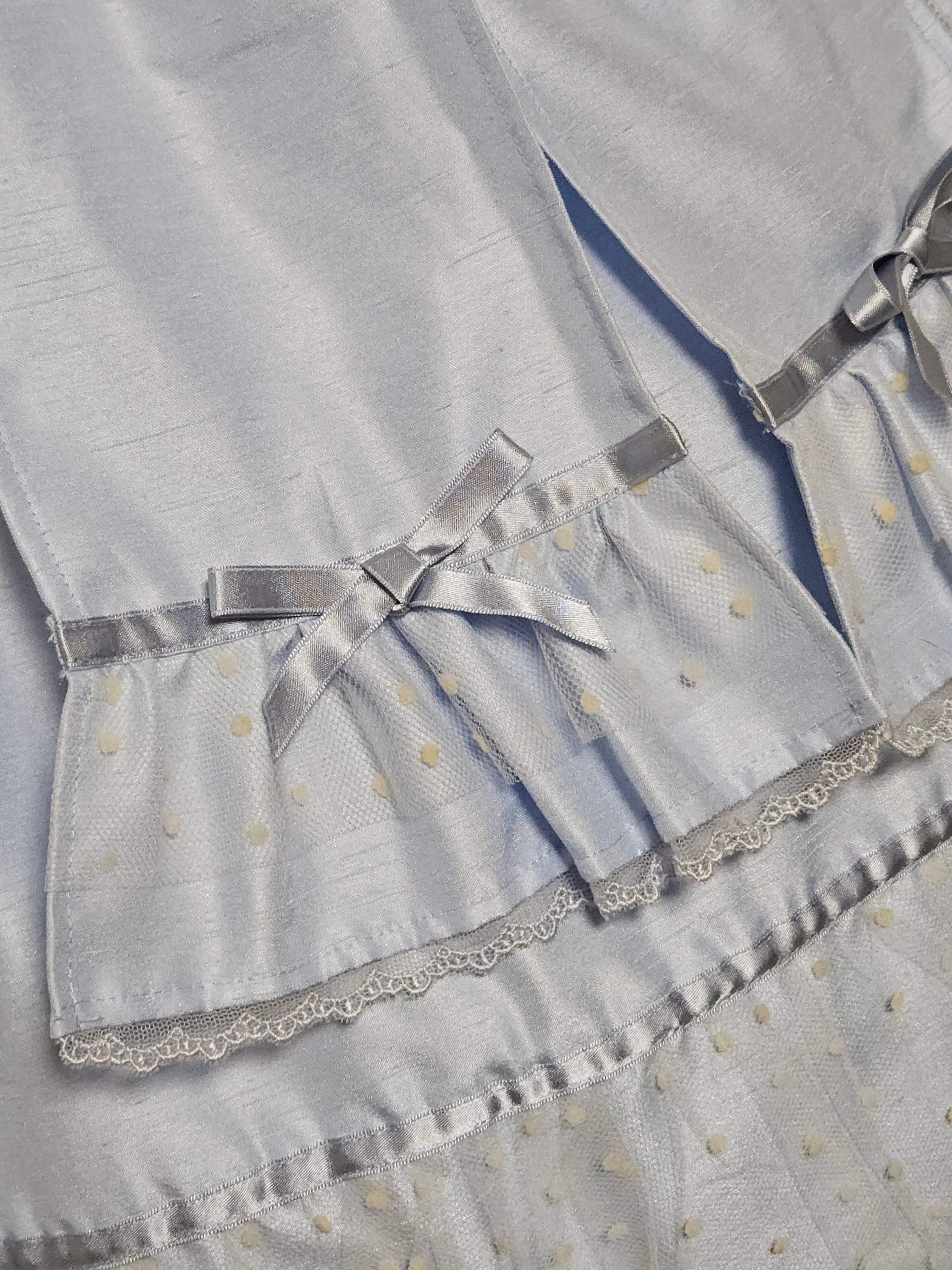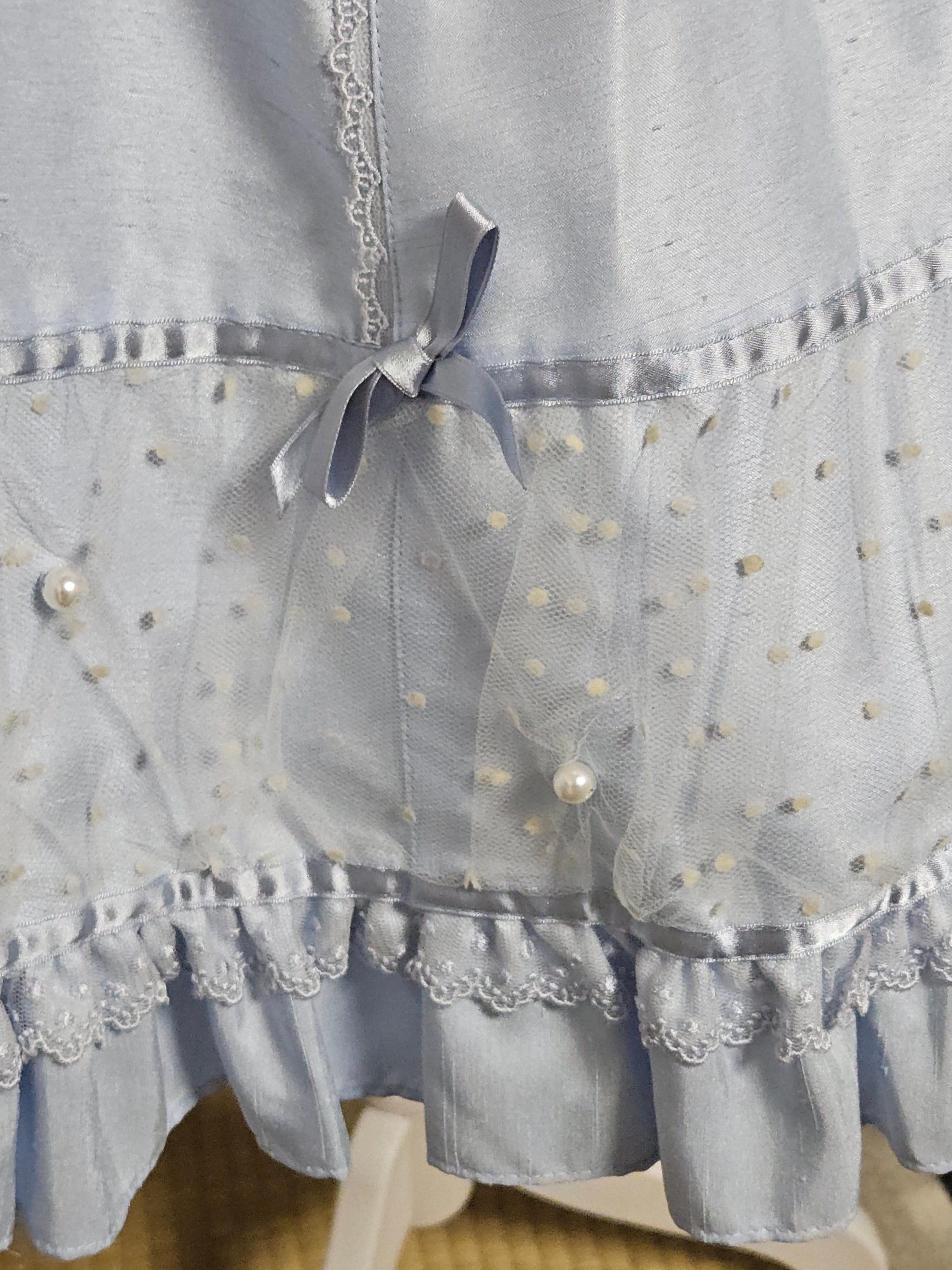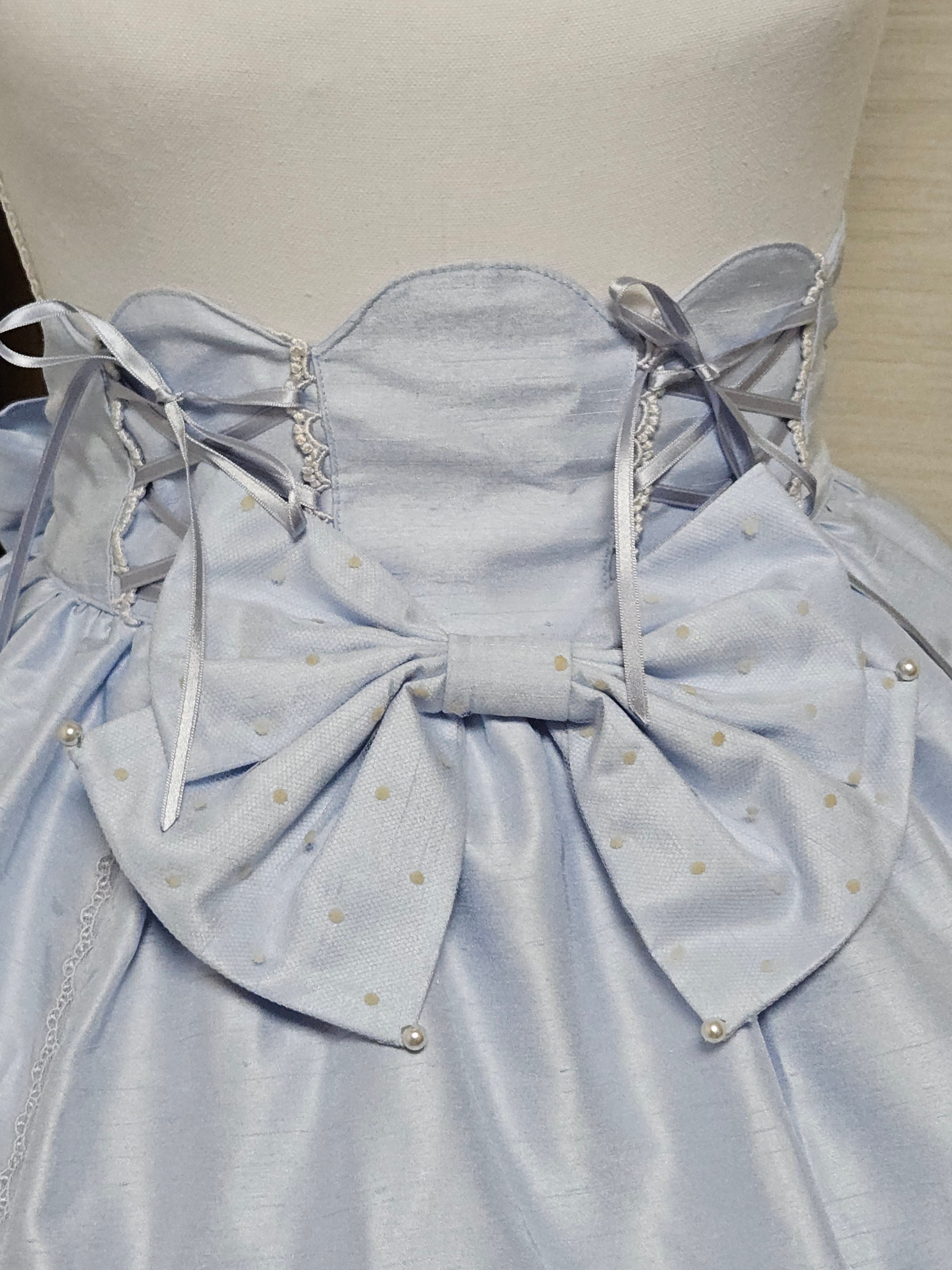 [Material] ·Body: back satin shantung ·Other Fabric: polka dot Flocked tulle [Lace] ·Tulle lace [Other] ·Satin ribbon
