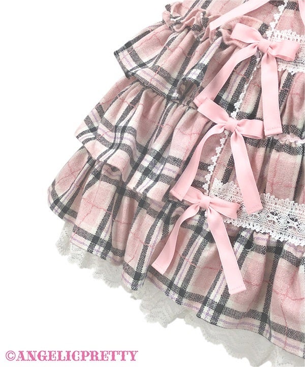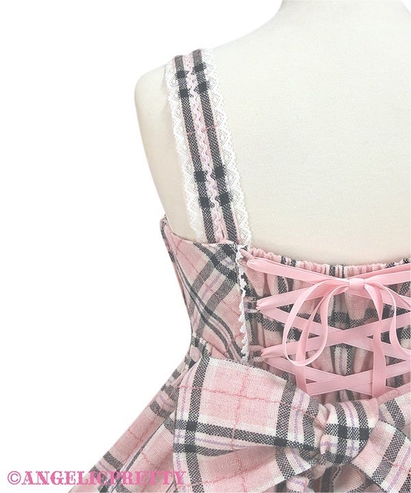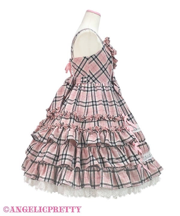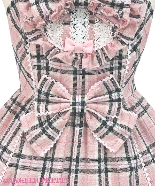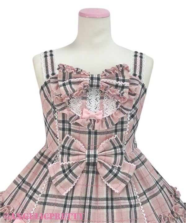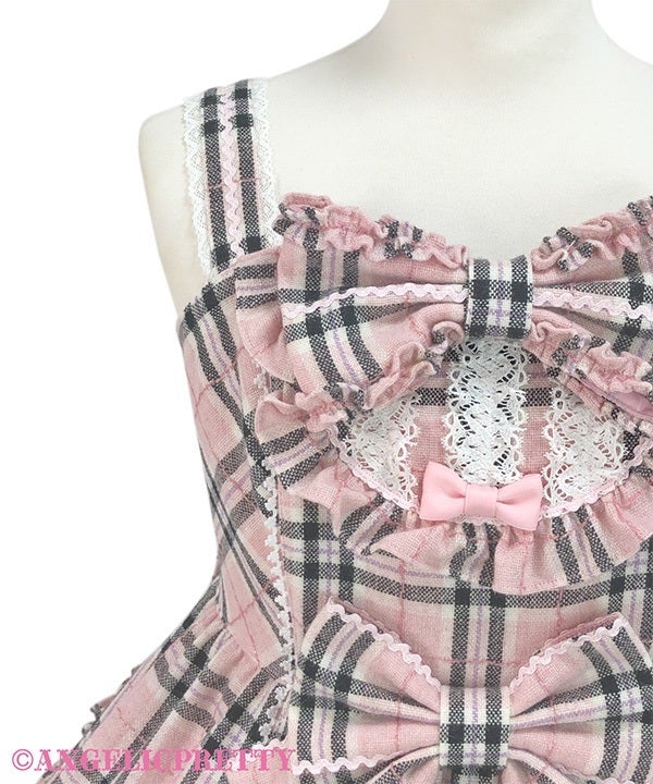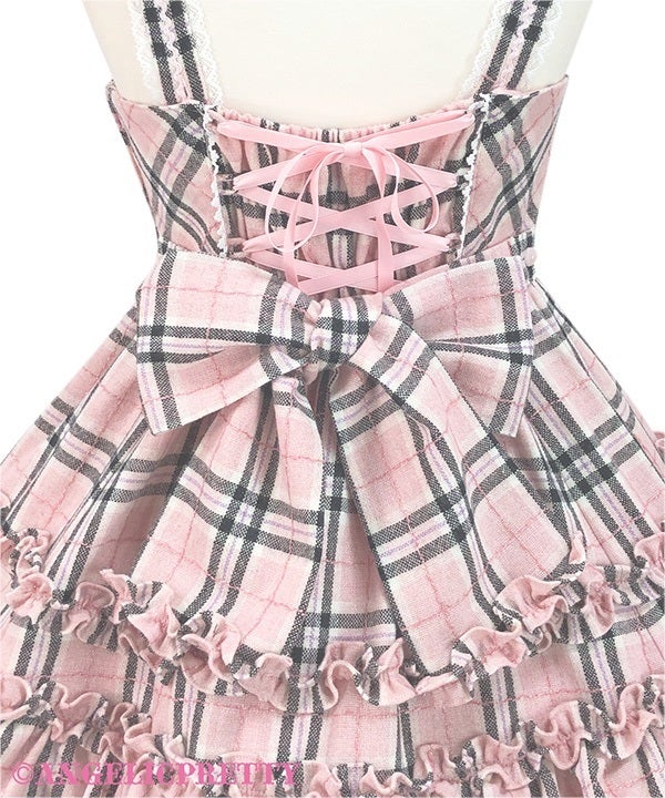 ☆リボンのお色はシロにはクロ、ピンクにはピンクになります。※Frill Frill Ribbonジャンパースカート(シロ)のモデル着用画像はサンプルとなります。