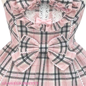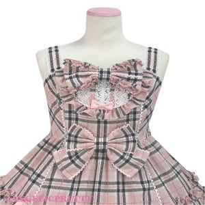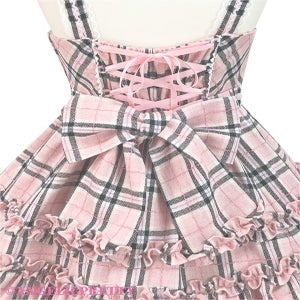 ☆ The color of the ribbon is black forthe white colorway and pink for the pink colorway. *The image of the model wearing the Frill Frill Ribbon jumper skirt (White) is a sample. The actual product will have a black ribbon.