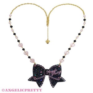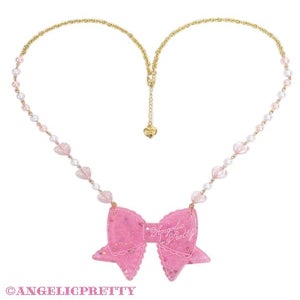 A ribbon-shaped necklace with sparkling heart shaped holographic glitter ♪
