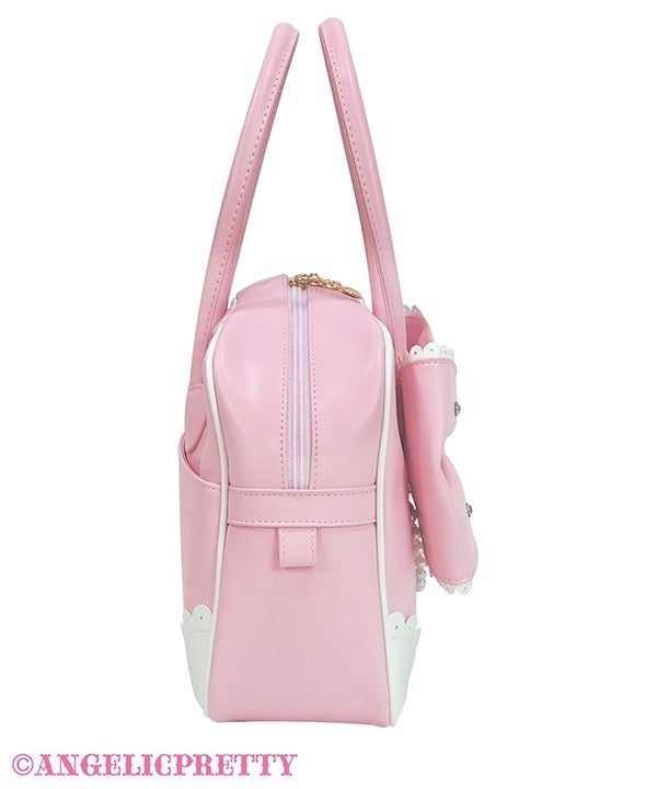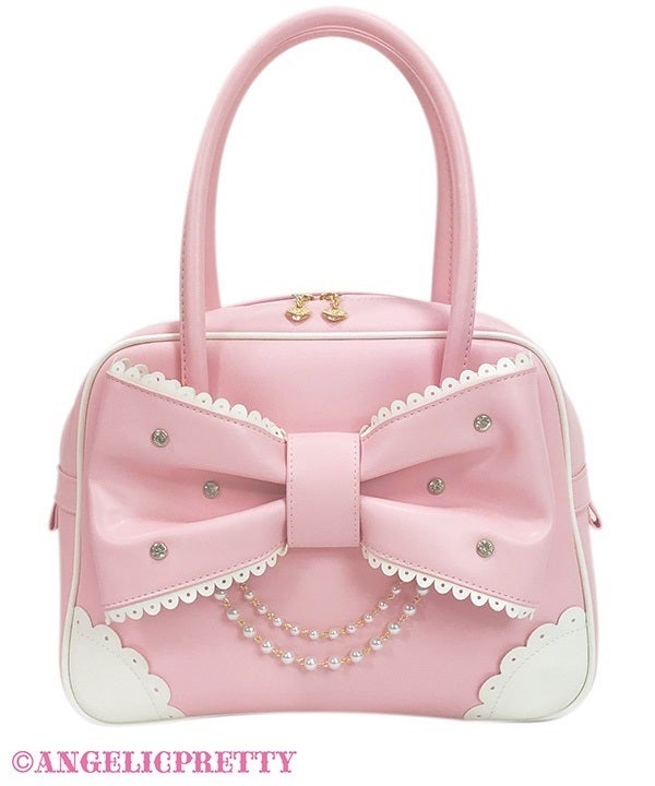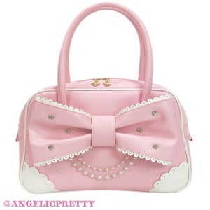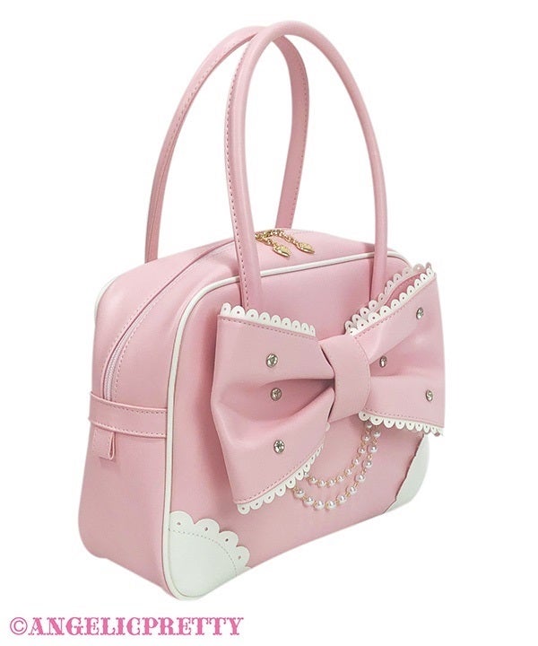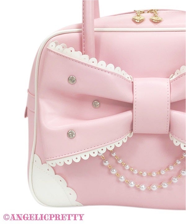 大きなリボンとパールチェーンが可愛いボストンバッグ。