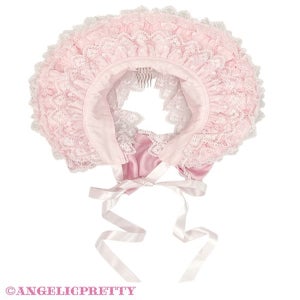 A dreamy half bonnet decorated with plenty of lace.