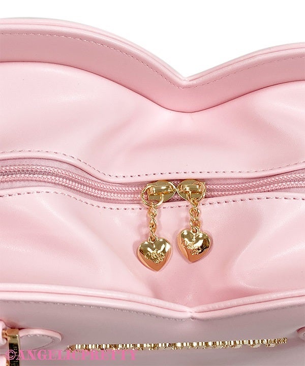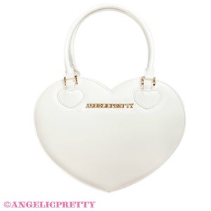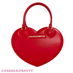 A large heart-shaped bag with a sparkling logo plate as the highlight.