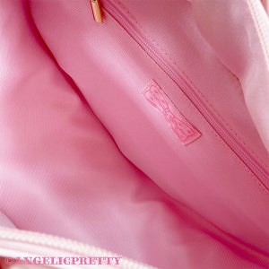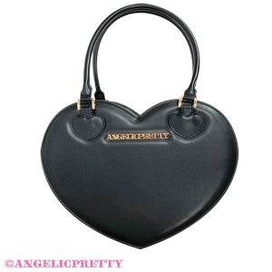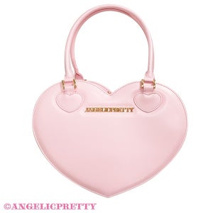 きらりと光るロゴプレートがポイントの大きなハート型バッグ。