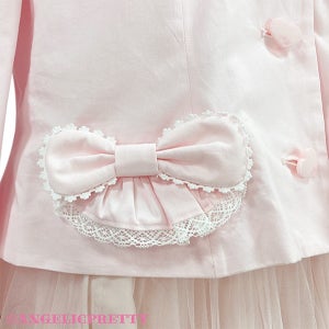 ハートのボタンやリボンがデコレーションされたポケットがポイント。