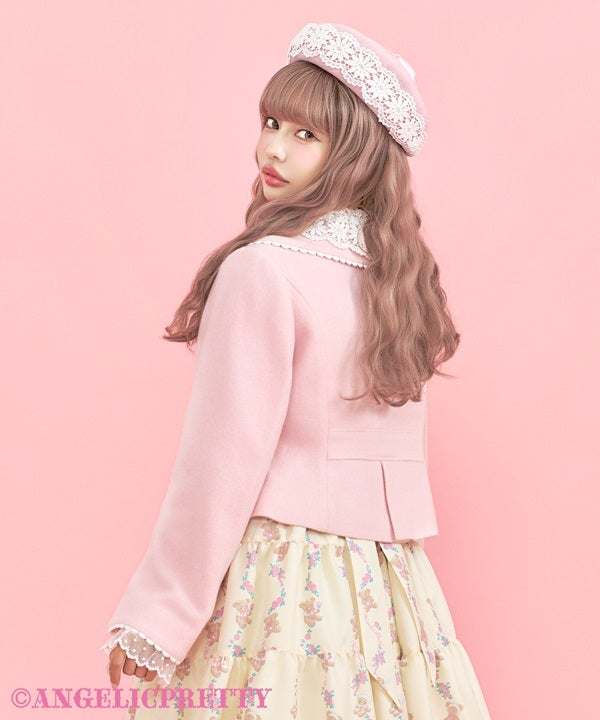 ケミカルレースカラーが美しく映える襟が特徴的なショートコート。
