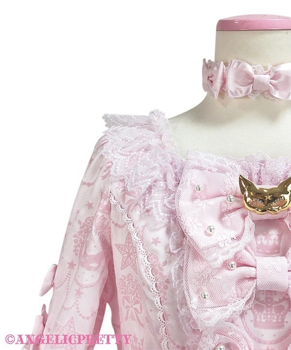 胸元のリボンにはオリジナルMasquerade Catブローチ付き。