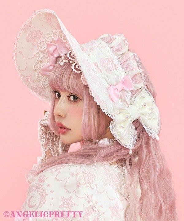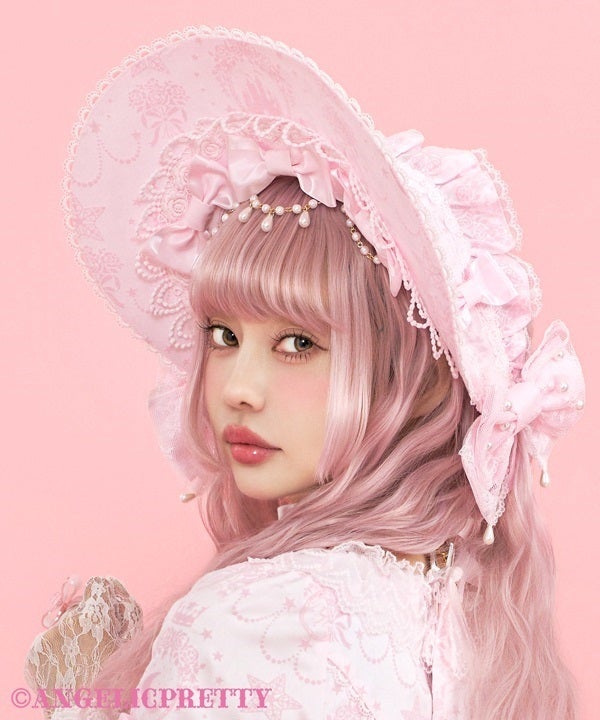 The brim of the half bonnet is decorated with gorgeous rose-motif lace.