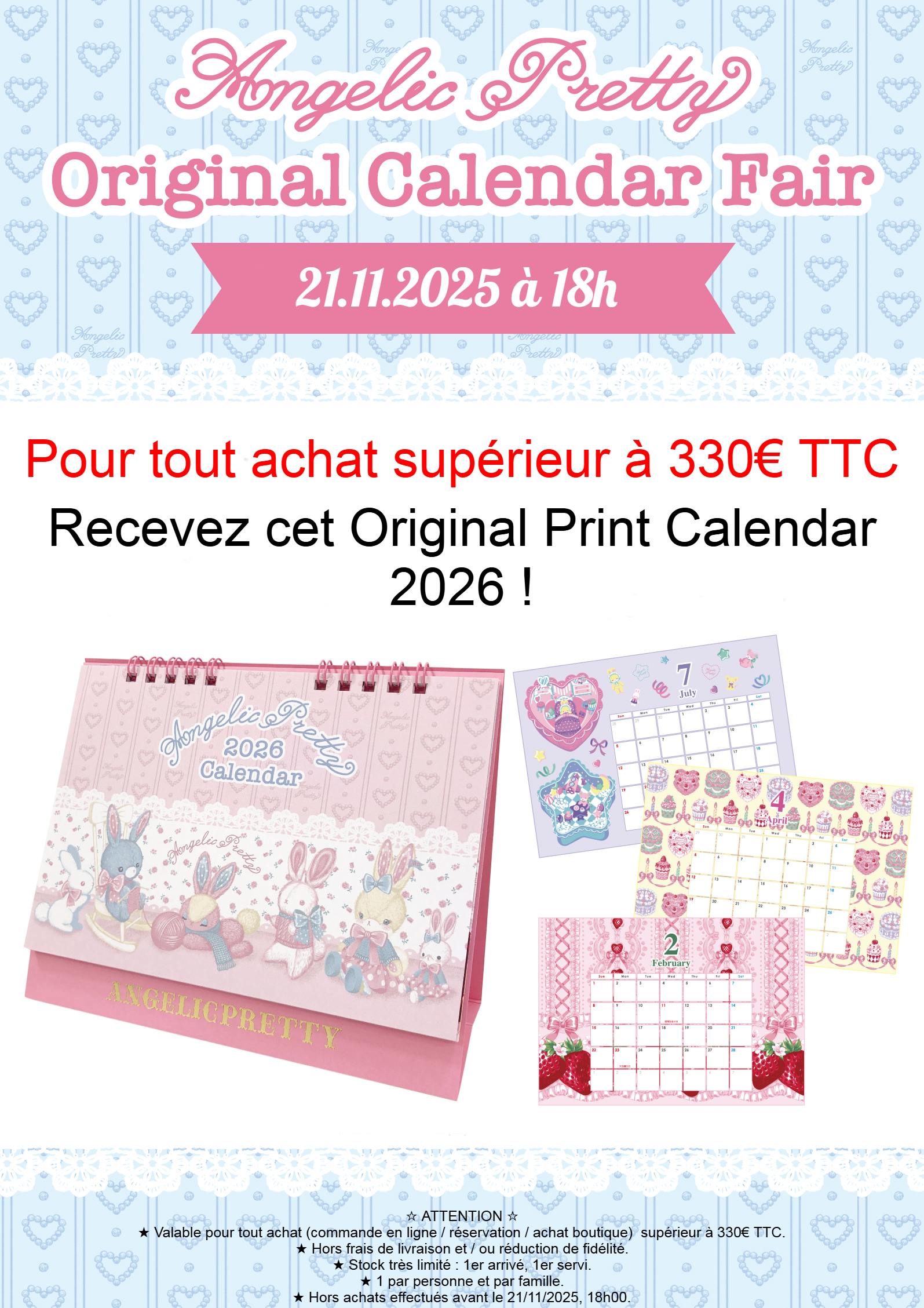Starting Saturday, November 22nd, we will be holding the "Original Calendar Fair" at all Angelic Pretty stores☆