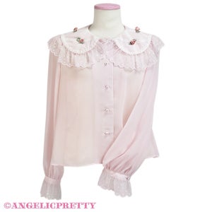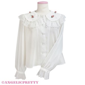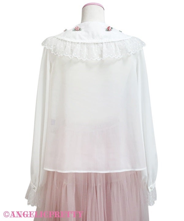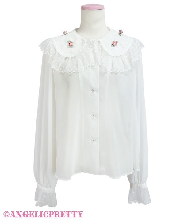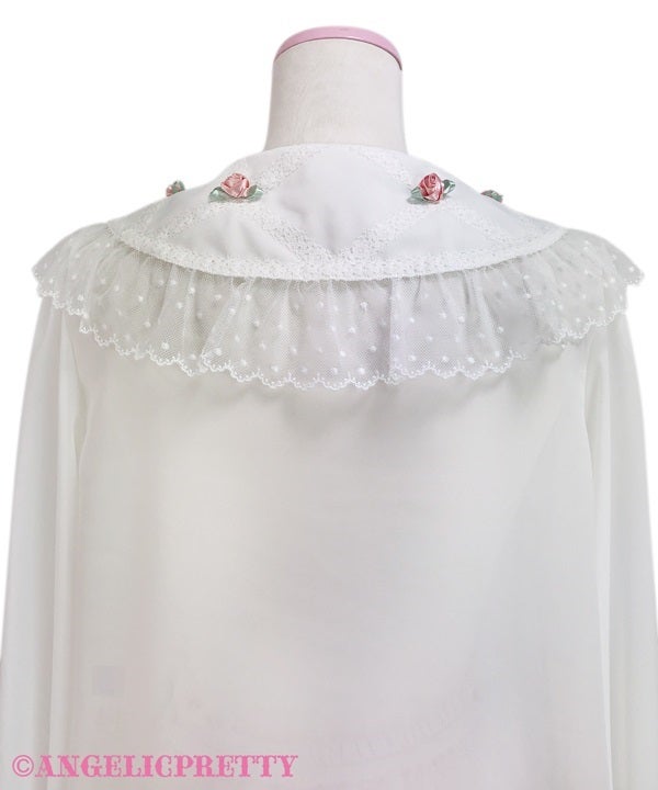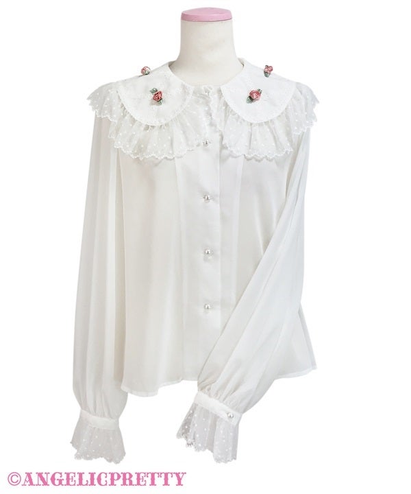 襟にあしらわれた小さなローズモチーフに心がときめく♡