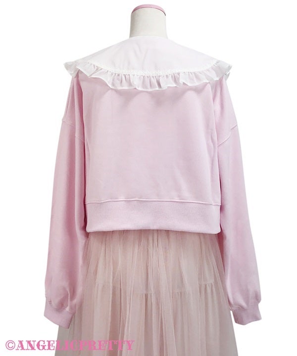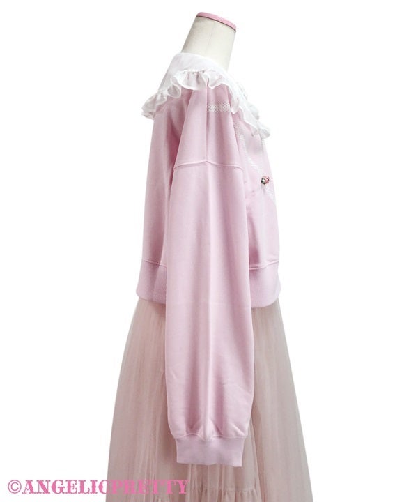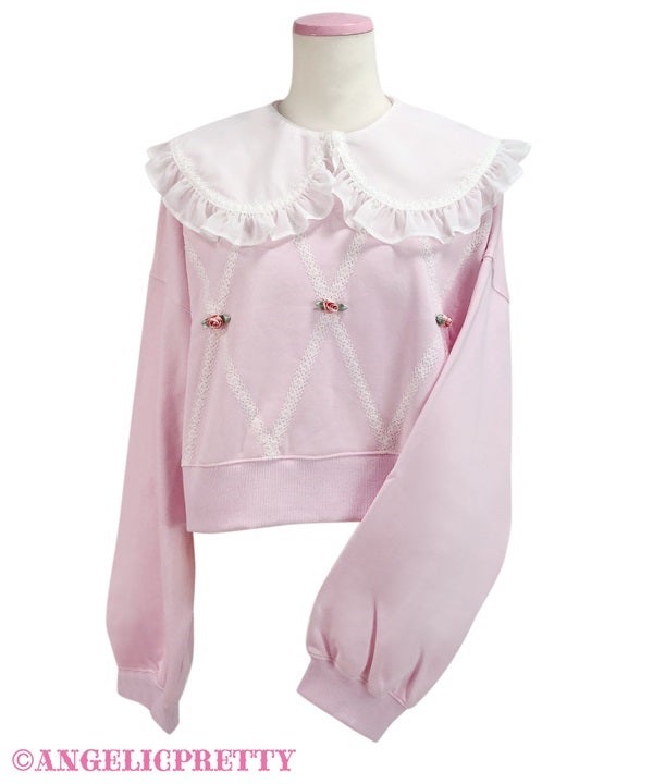 小さなローズモチーフのデコレーションが可愛いプルオーバー。