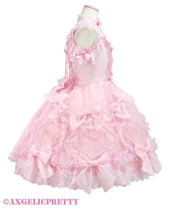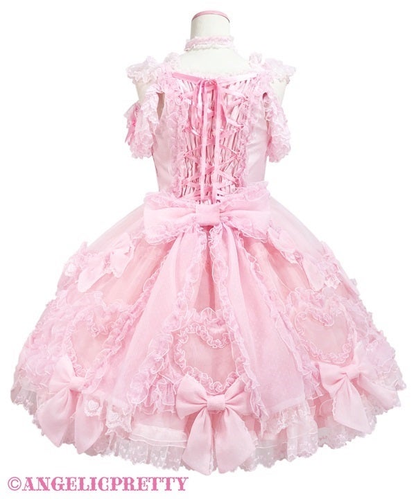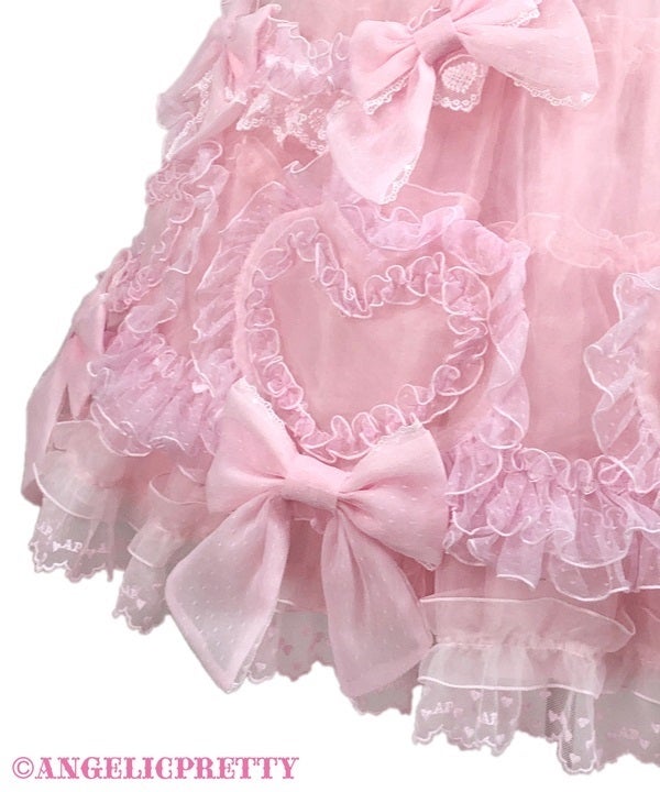 A tulle skirt decorated with light love hearts is layered on top of generous organza frills.