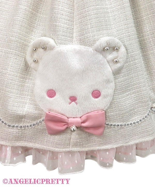 Introducing a cute jumper skirt with fluffy bear appliqués!