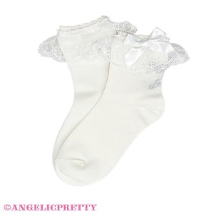 可愛らしいレース付きのクルー丈ソックスはどんなコーディネートにも合わせやすい定番アイテム。