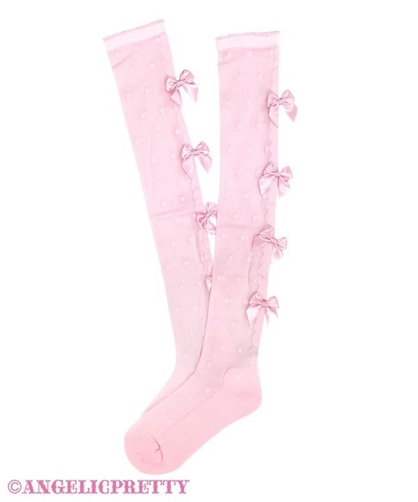 These over-the-knee socks have been renewed, featuring a cute back decorated with lots of ribbons.