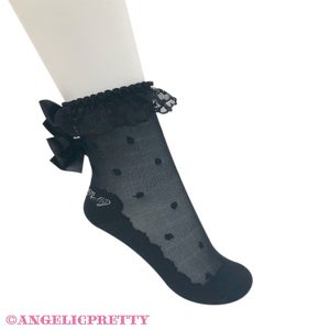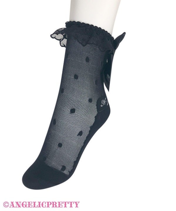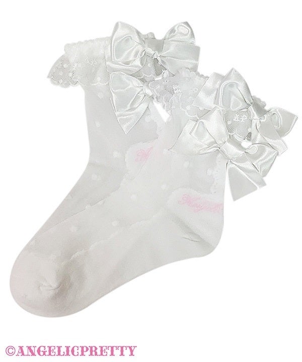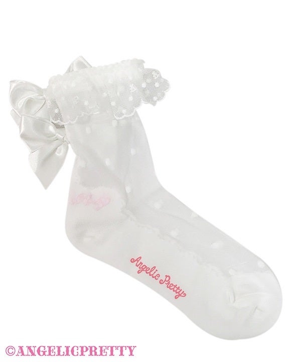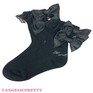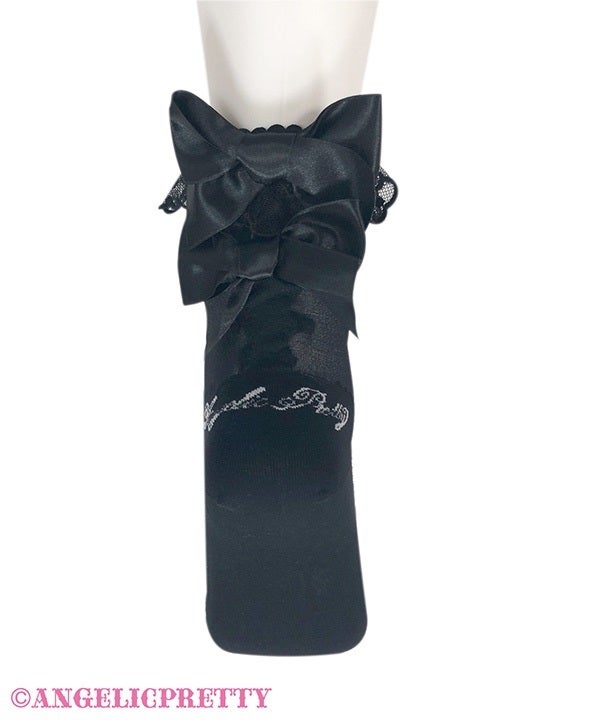 大きなバックリボンがボリューム感たっぷりなクルー丈ソックス。