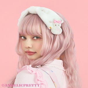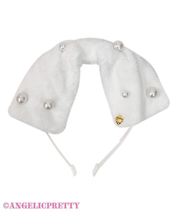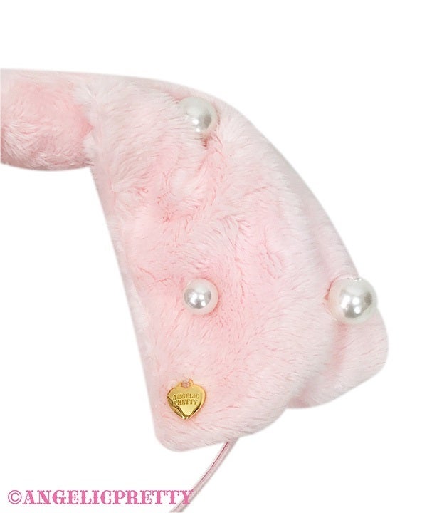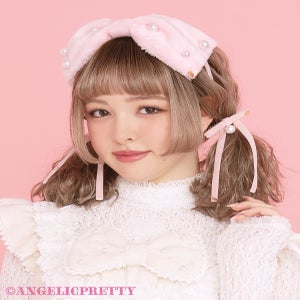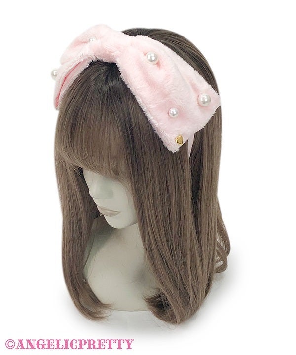 ふわふわ素材にパールがちりばめられたリボンカチューシャ。