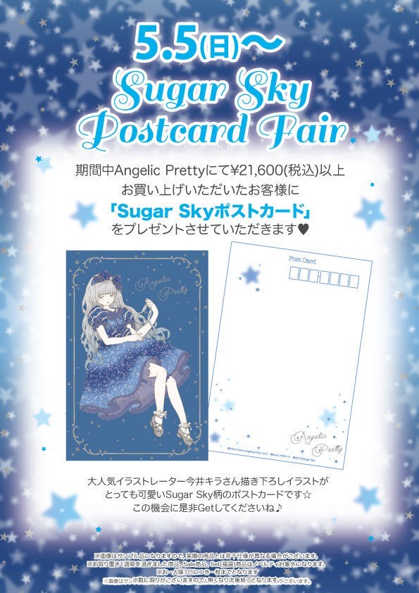 During this period, customers who spend ¥21,600 or more (tax included) at Angelic Pretty will receive a free "Sugar Sky Postcard"!