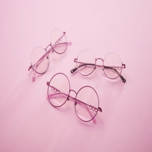 可愛らしいパステルピンクのアンダーリムフレームに、淡く透き通るピンクのモダンはまさにPrincessのためのグラス。