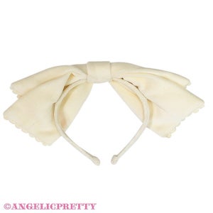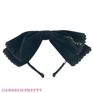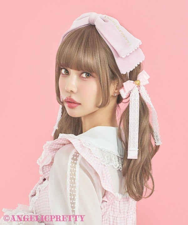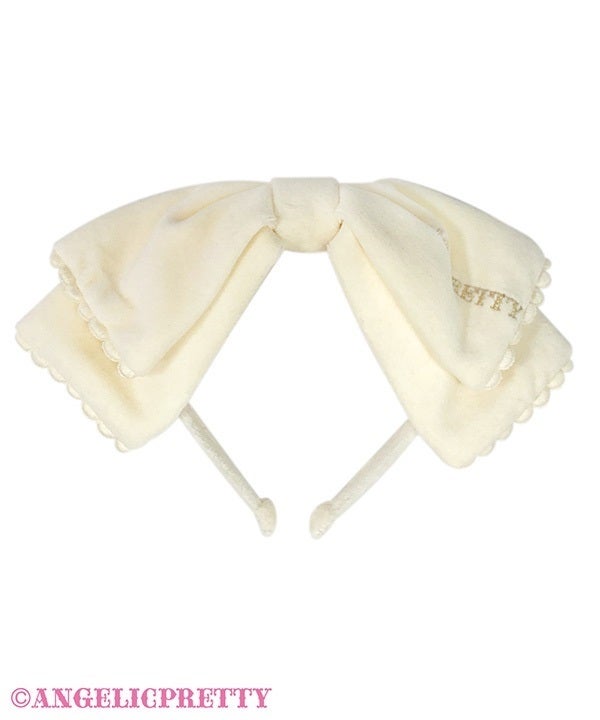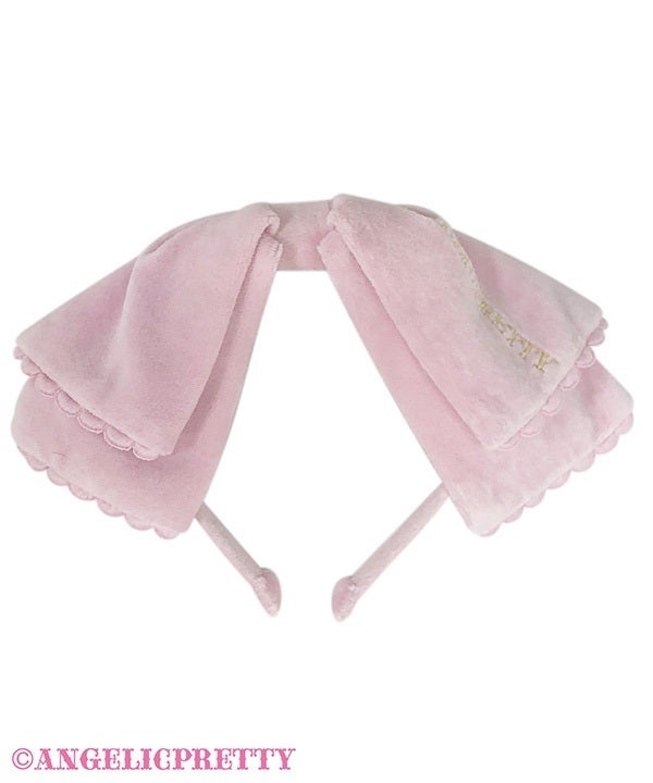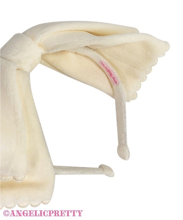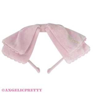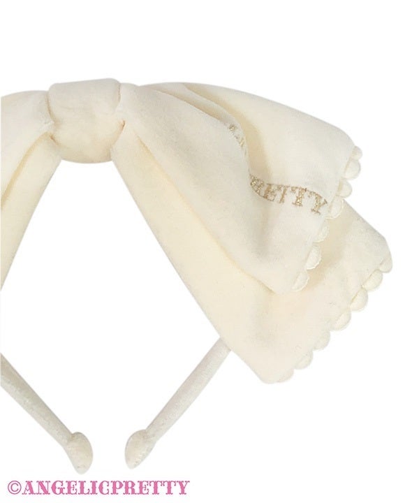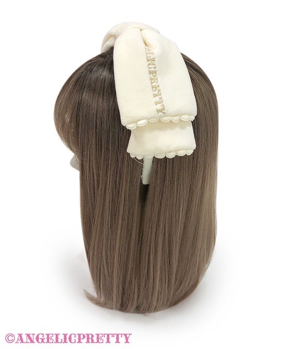 ロゴ刺繍がほどこされたリボンカチューシャ。