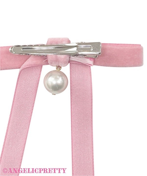 オリジナルロゴがプリントされたパールがポイントのシンプルなリボンクリップ。
