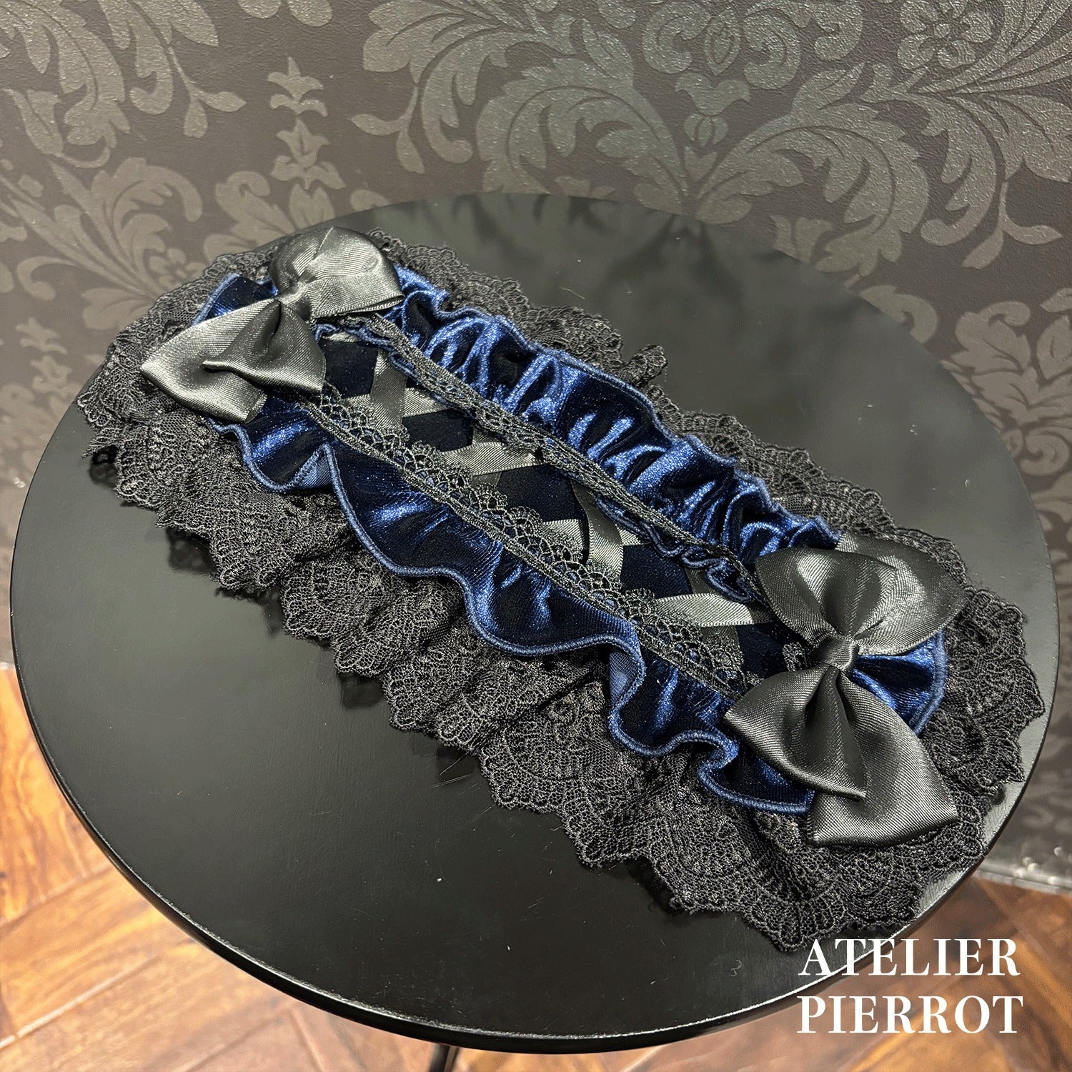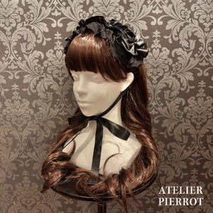 [Brand Notes]A fantastical head dress made of velour fabric with lace-up details. Named " Adenophora ," the design exudes both elegance and solitude, adding a touch of dignified elegance to any outfit. Pair it with the jumper skirt from the same series to enjoy a more complete look.