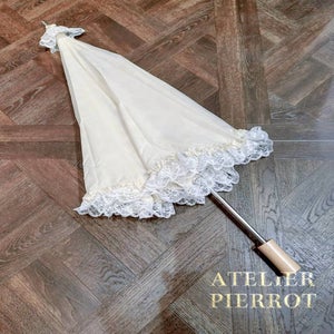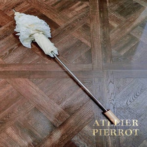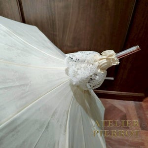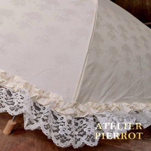Ribs: fiberglass | Center rod: aluminum | Handle: wood | Fabric: 100% polyester | Lace: 100% nylon