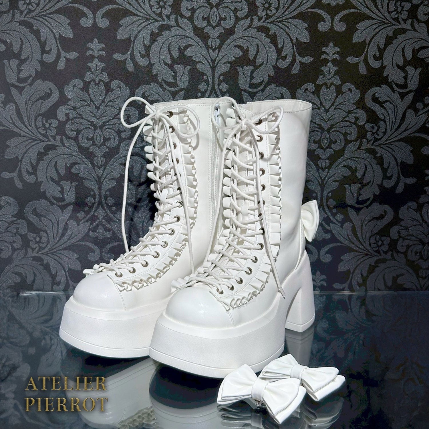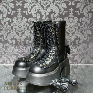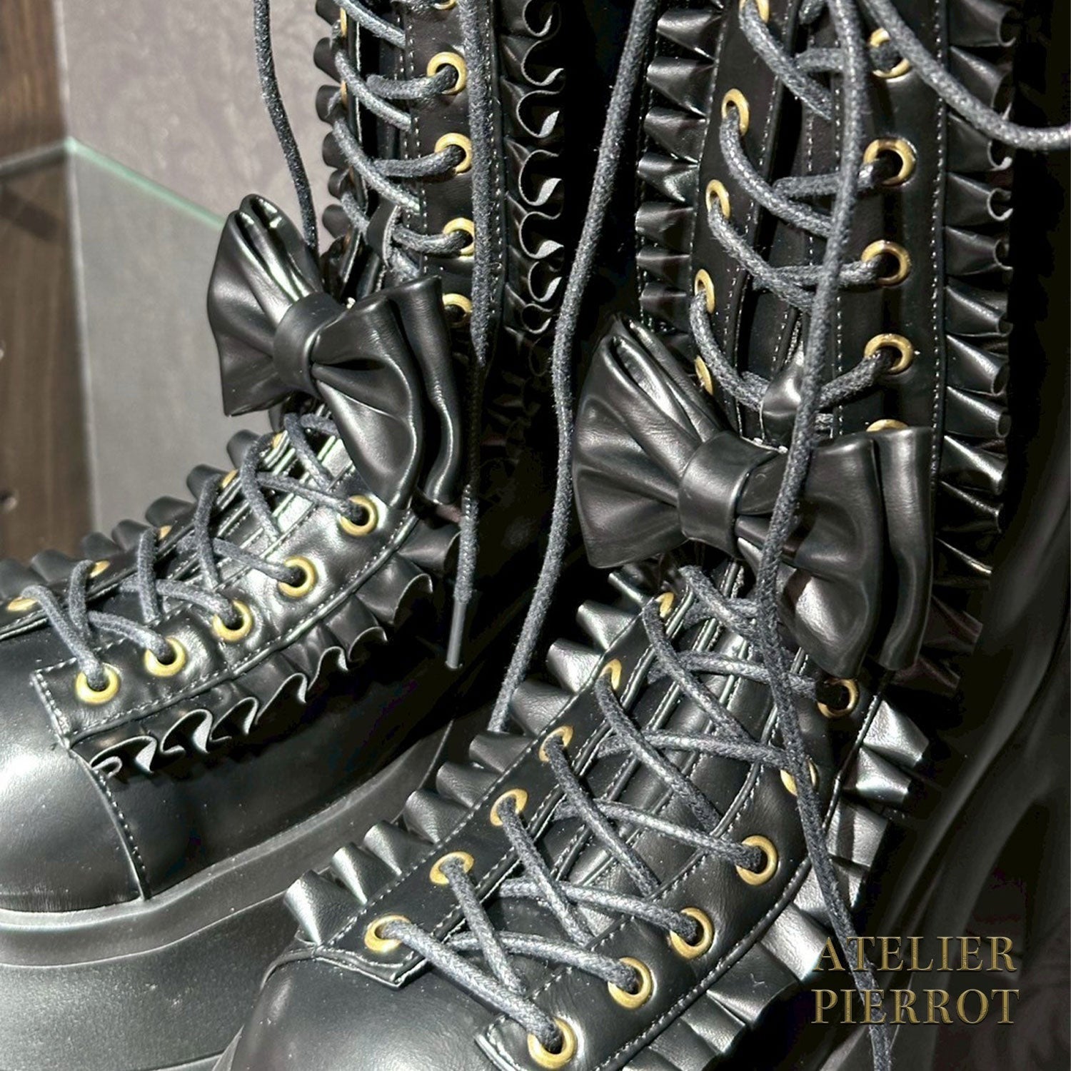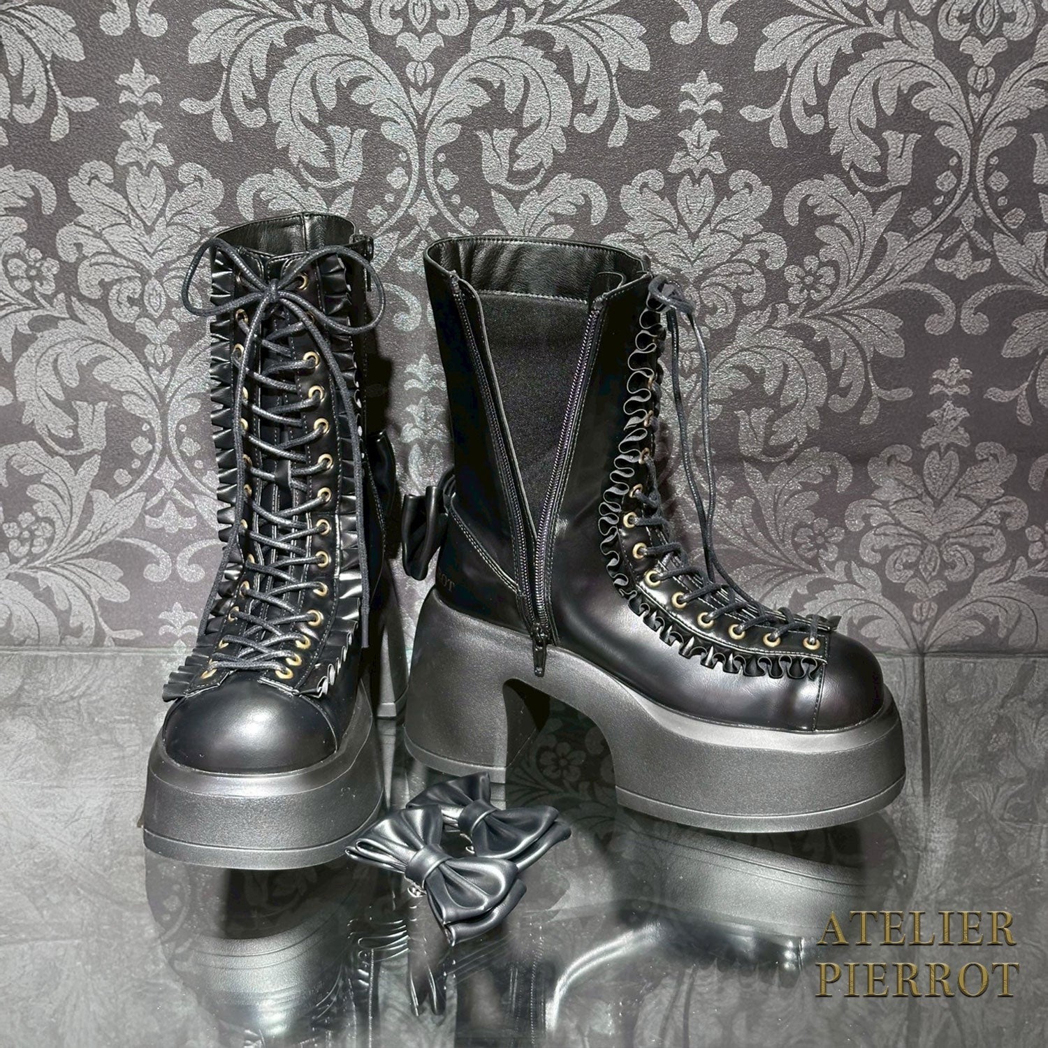 These boots are perfect for Gothic Lolita, with frills, ribbons, and a delicate lace-up design that combines cuteness with a solid look!The back is subtly decorated with a ribbon and brand logo.