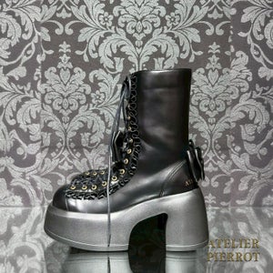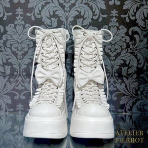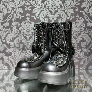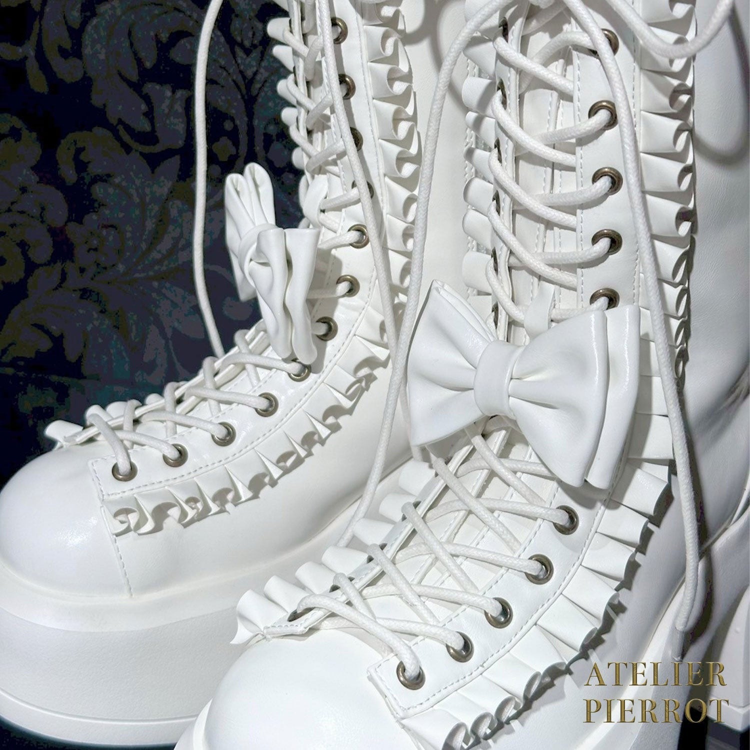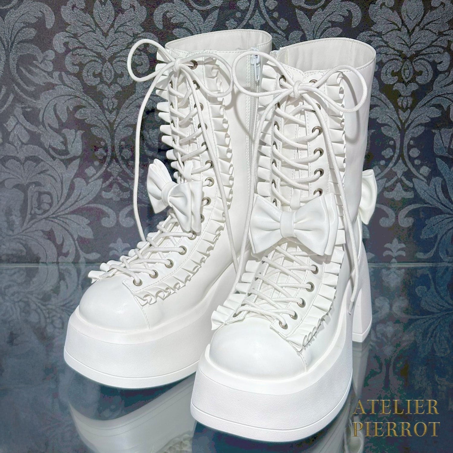 These boots are perfect for Gothic Lolita, with frills, ribbons, and a delicate lace-up design that combines cuteness with a solid look!The back is subtly decorated with a ribbon and brand logo.