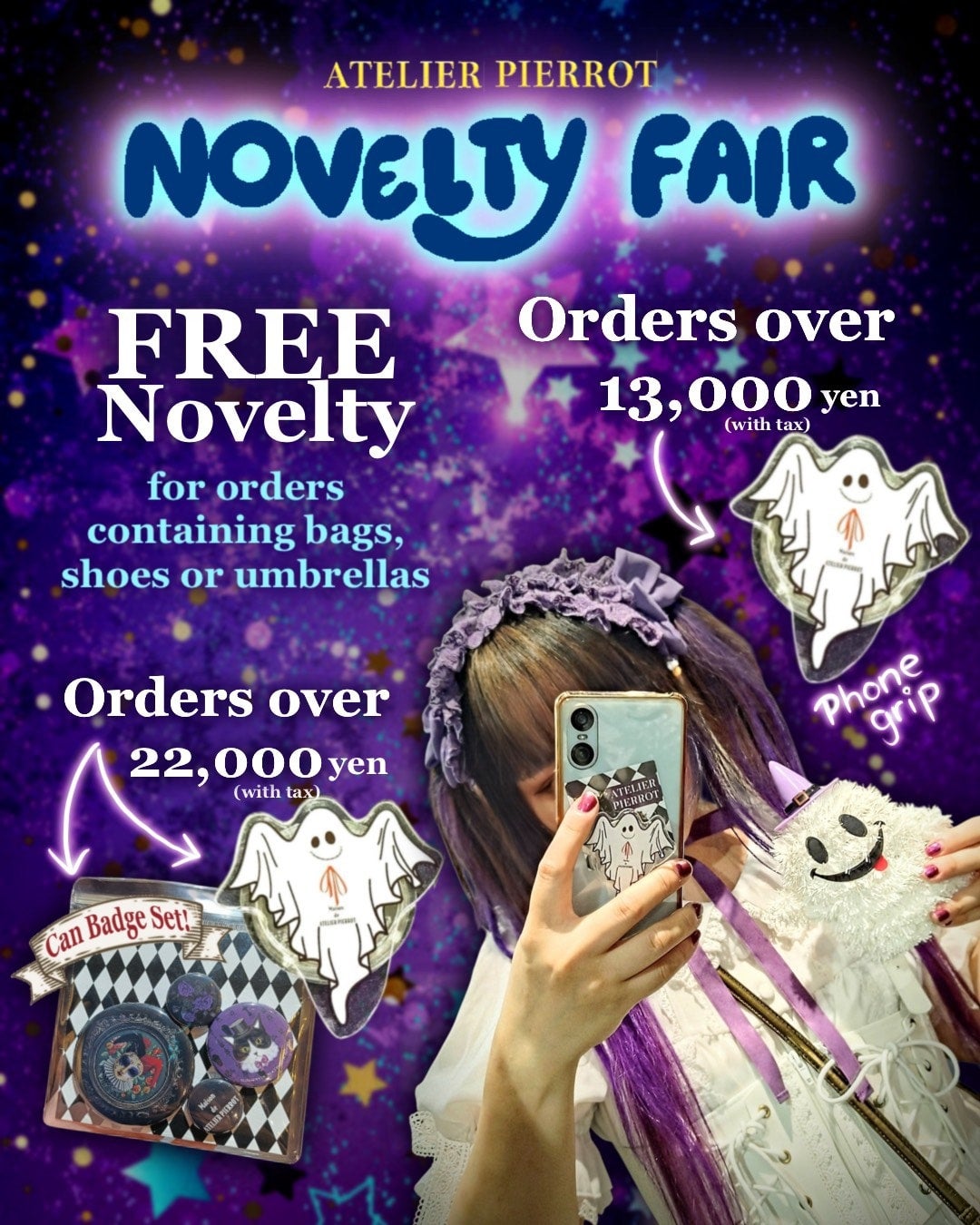 For orders totaling over 22,000 yen (with tax) containing bags, pouches, umbrellas or footwear you'll receive the Ghost Phone Grip *AND* our Can Badge Set as well! You can combine the items with any other clothes on our Online Store.