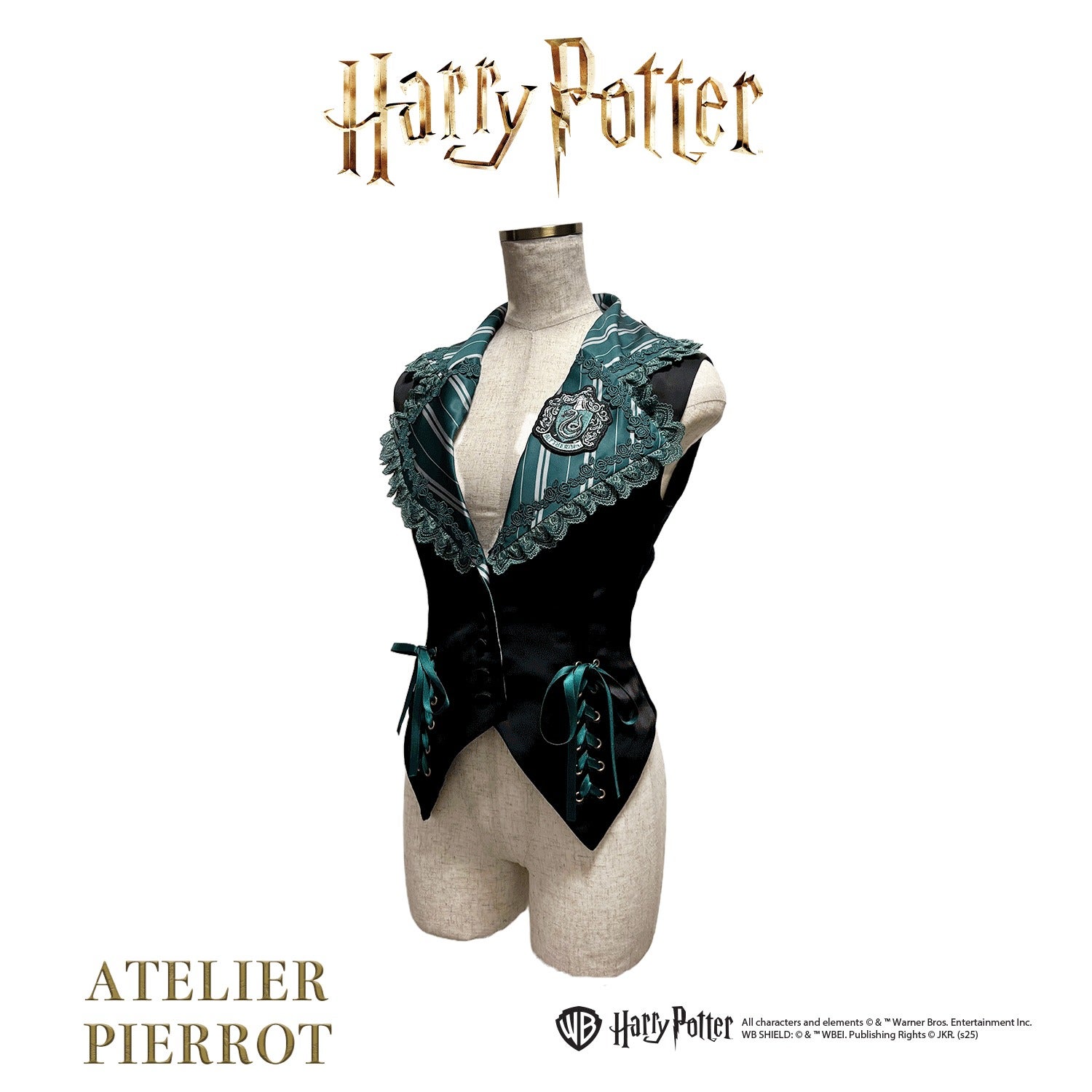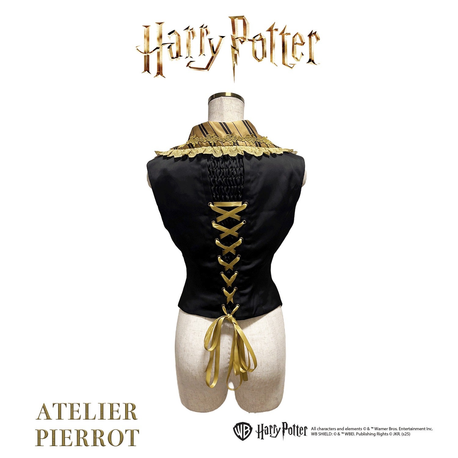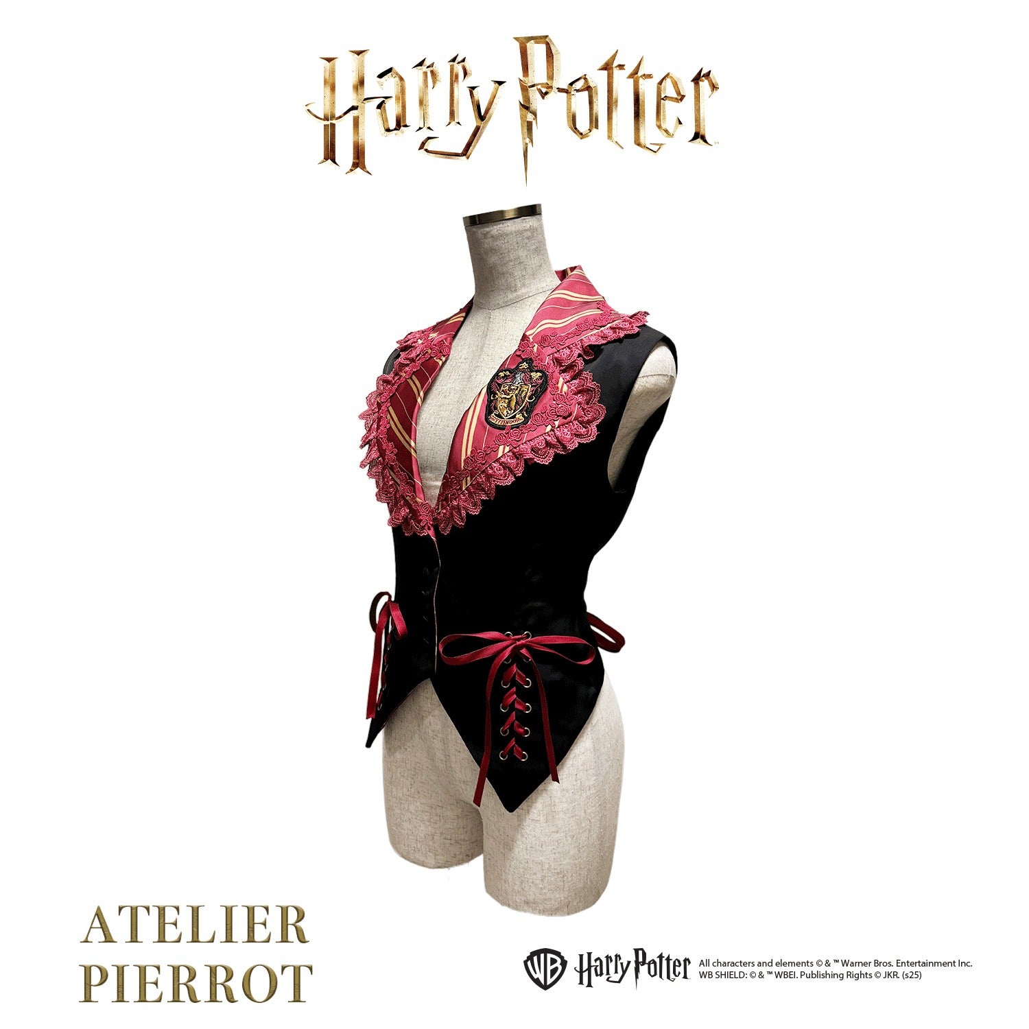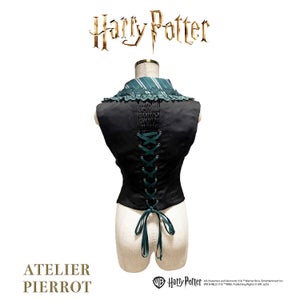 This classic lace-up vest is inspired by the four Hogwarts houses: Gryffindor, Slytherin, Hufflepuff, and Ravenclaw .