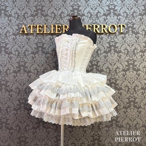 This gorgeous mini corset dress will add a touch of drama to your sparkling night.The delicate lace and overlapping frills beautifully accentuate the silhouette, making this a special piece that will make your heart leap just by putting it on.
