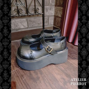 The patchwork details and bat wing motif give these shoes a gothic horror vibe.