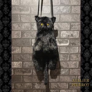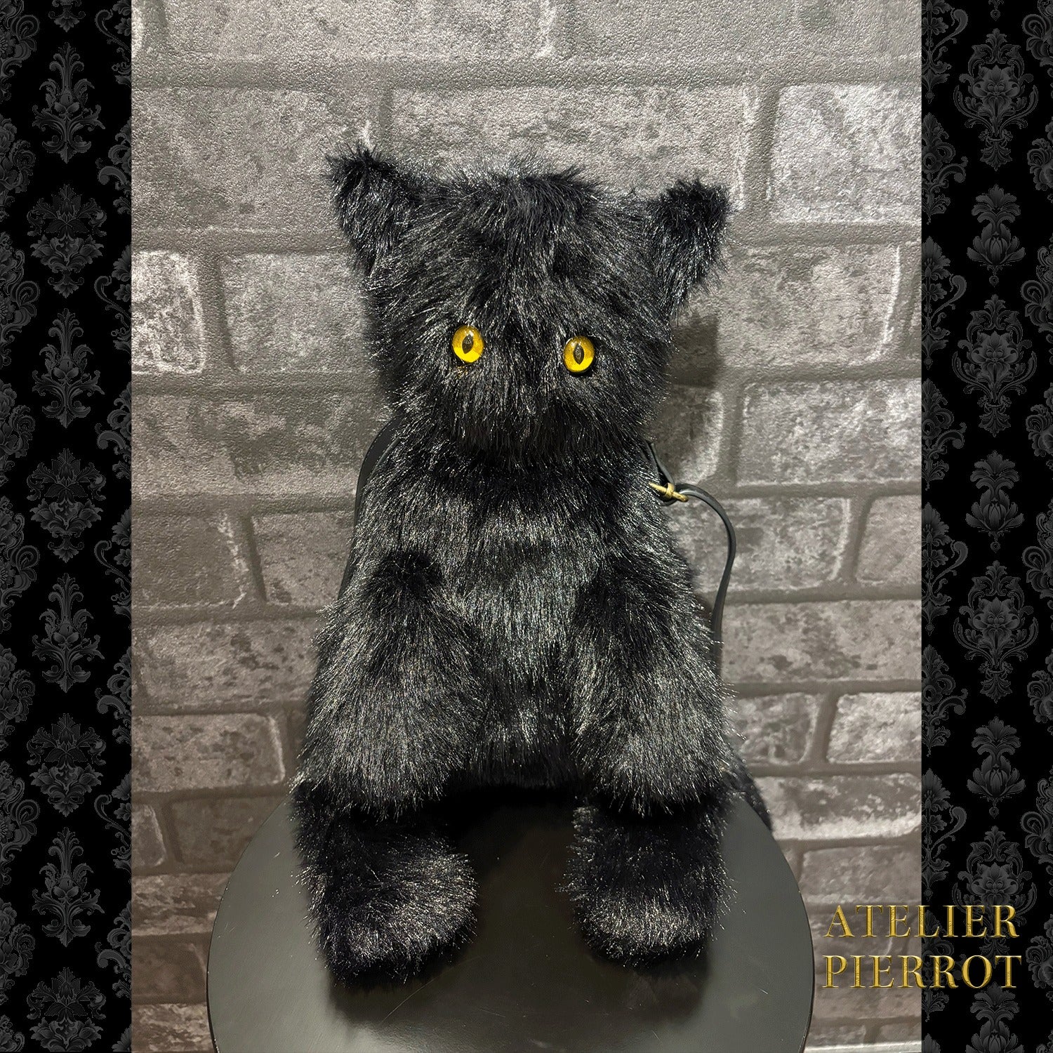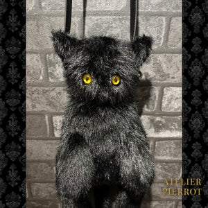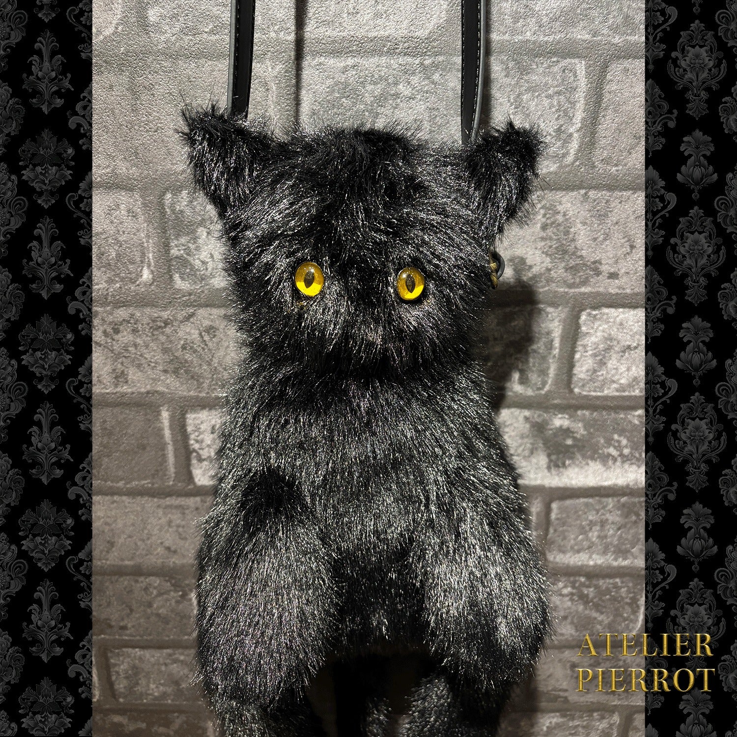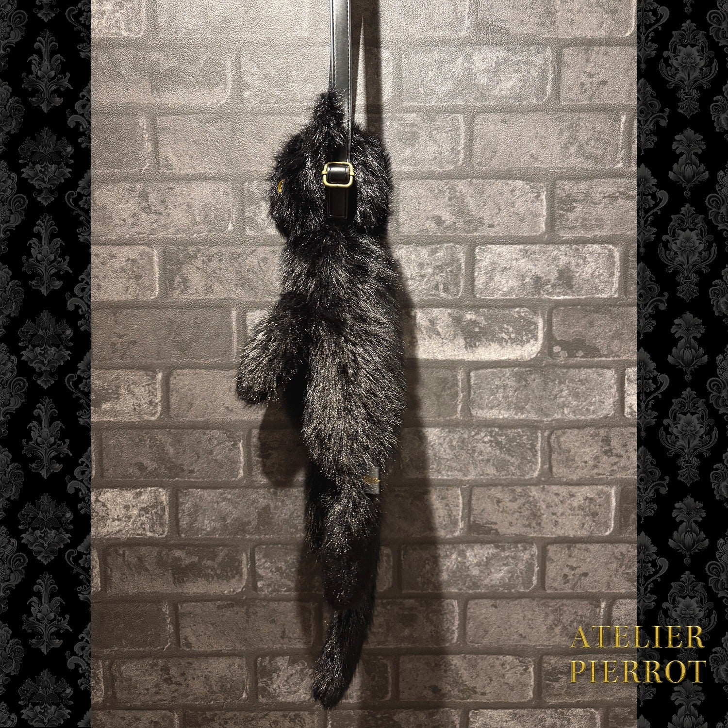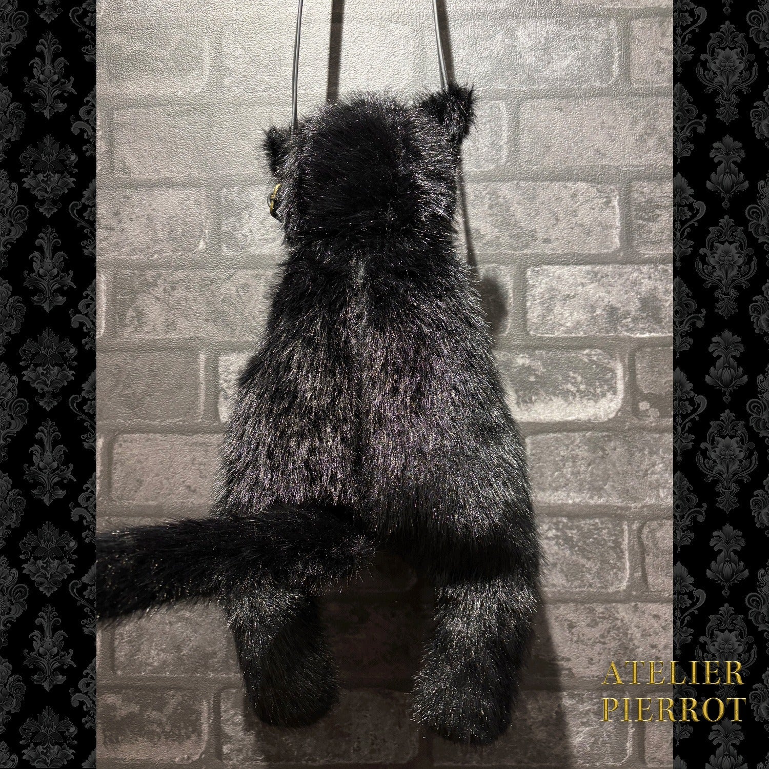 This Noir Cat shoulder bag features fluffy fur and mysterious yellow eyes, making it a charming addition to your everyday life.The tail has a zipper that can be opened and closed.