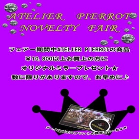 Offered to customers who prorder or purchase Spring/Summer 2015 collection items at the Osaka shop, or those who spend 10000jpy or more on Atelier Pierrot products at the Jam select shop in Kochi.