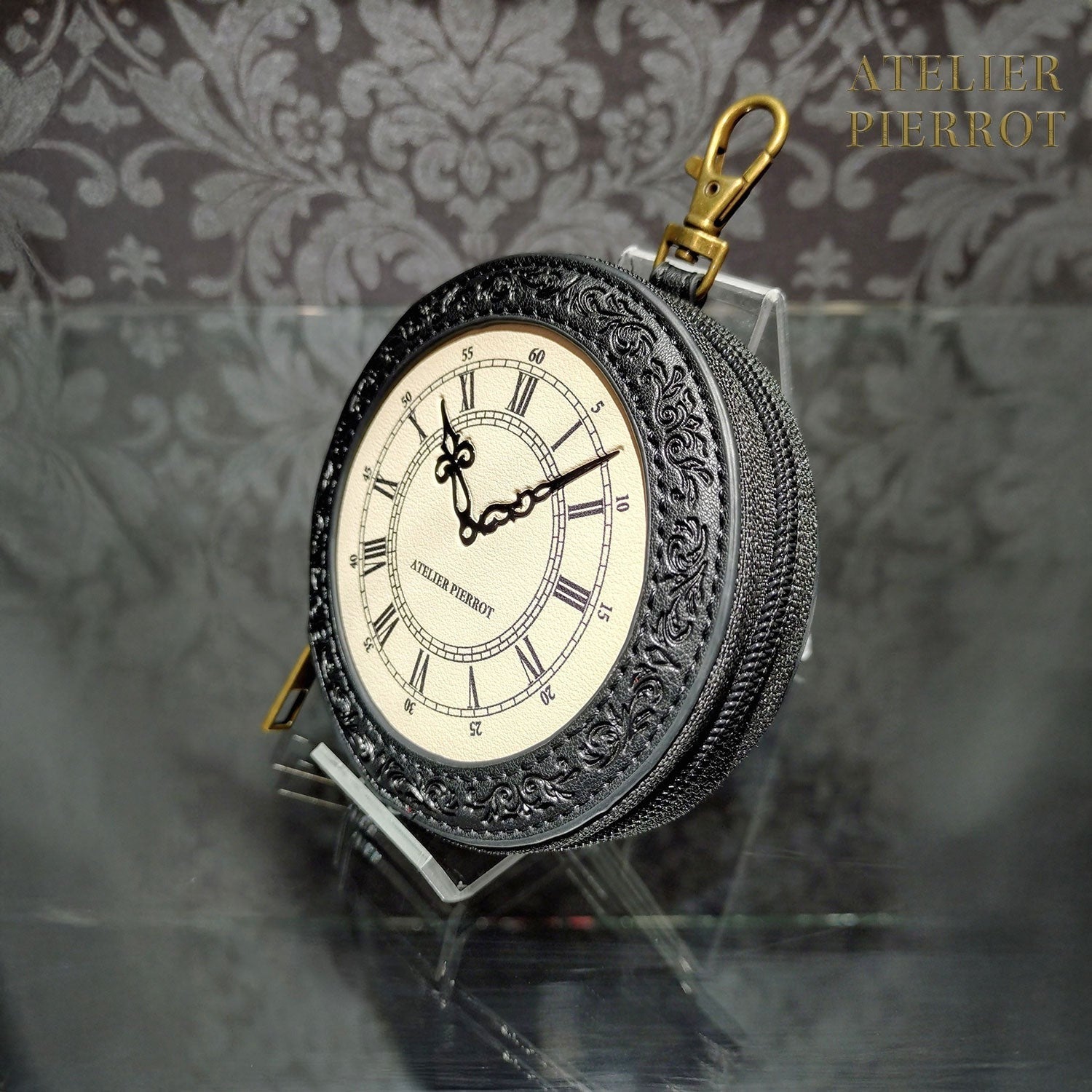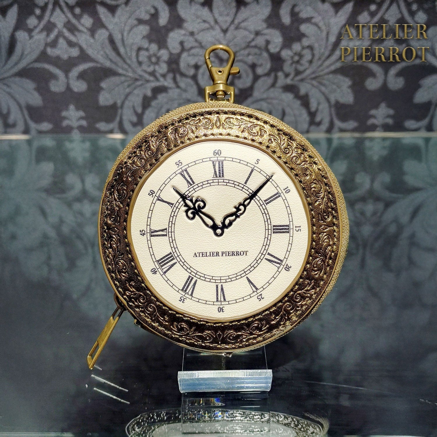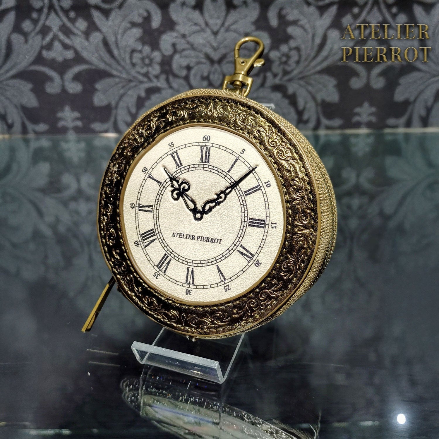 The heavy antique clock motif has been turned into a convenient coin case that is easy to carry around.