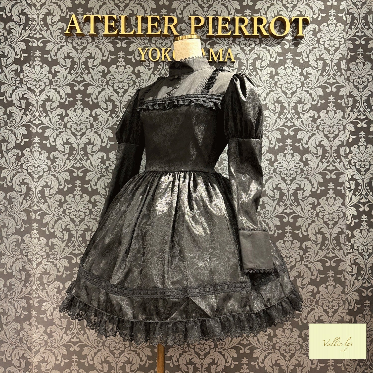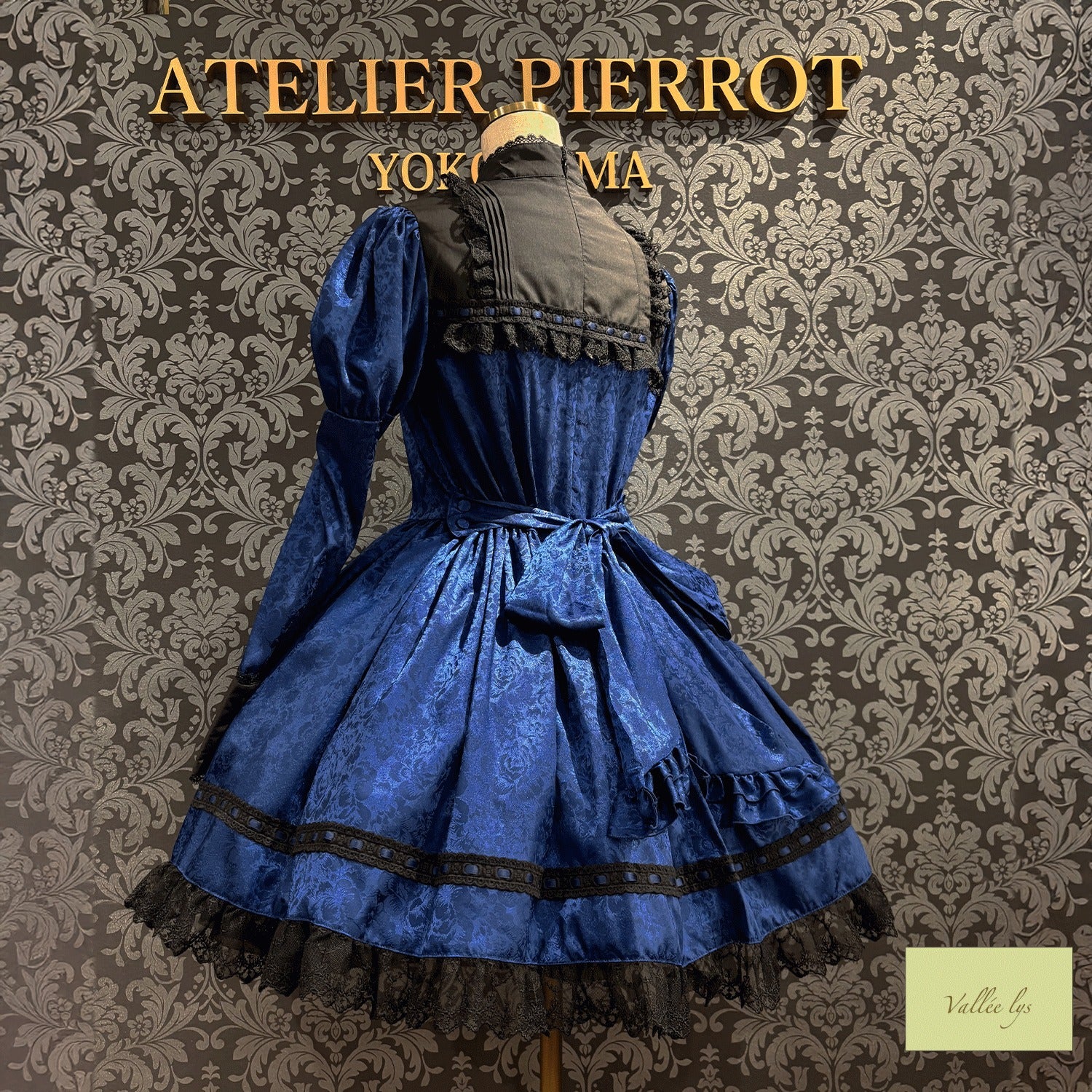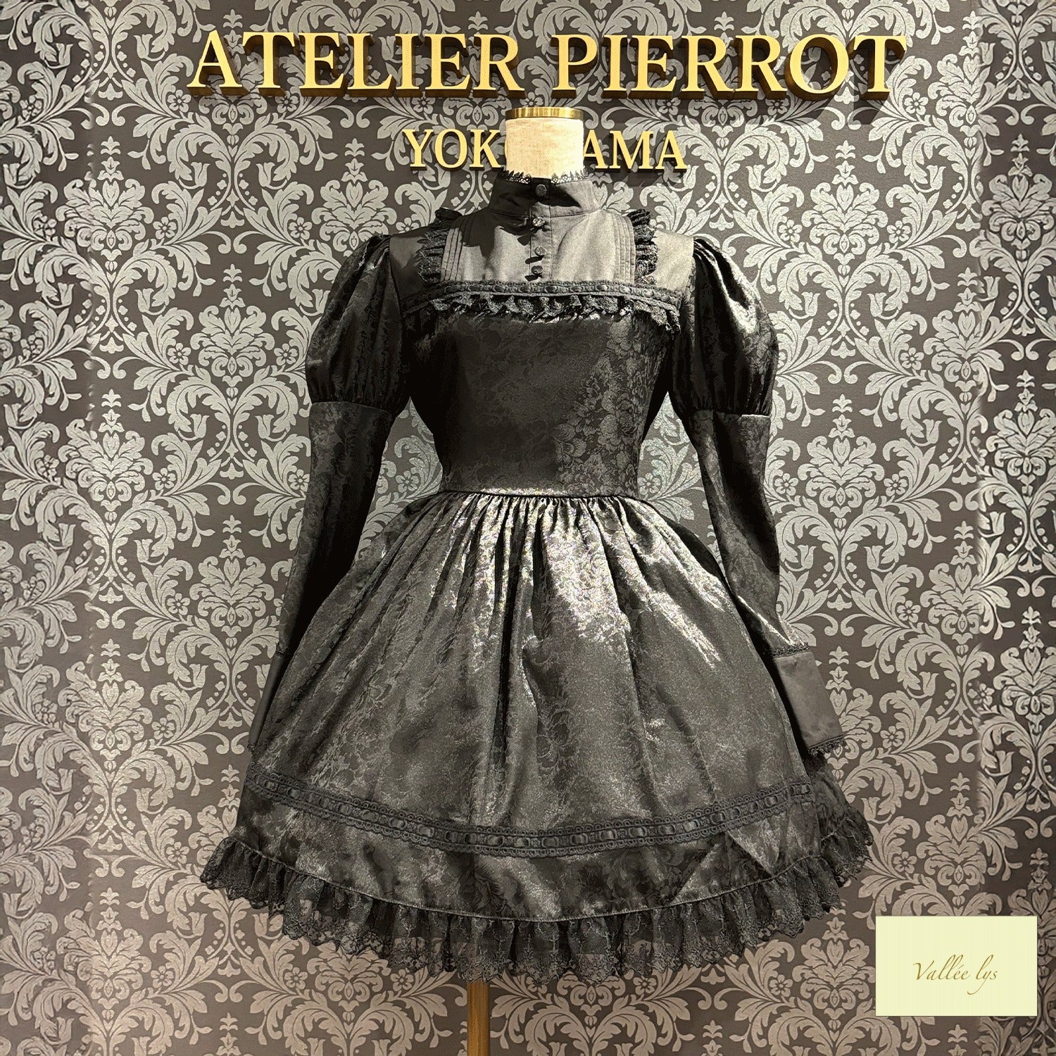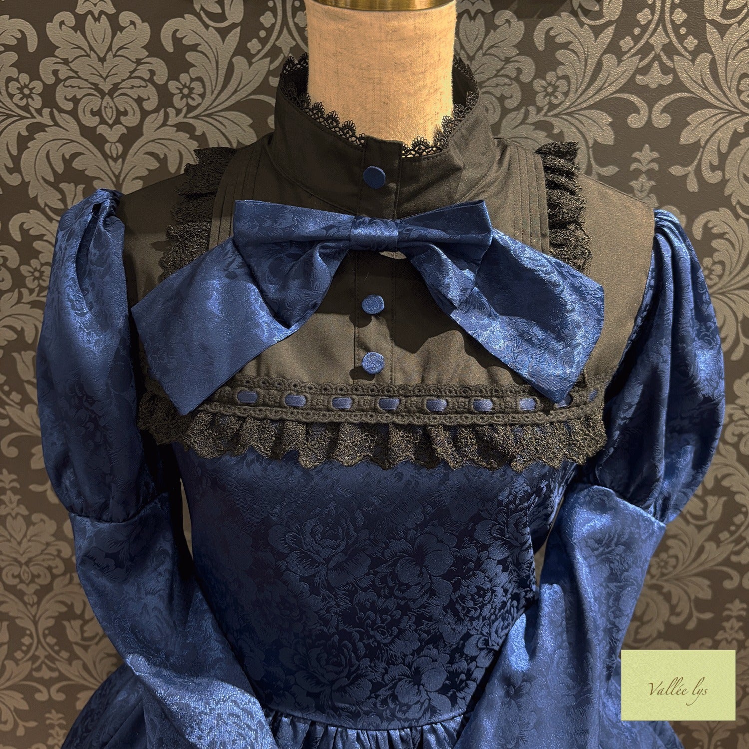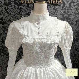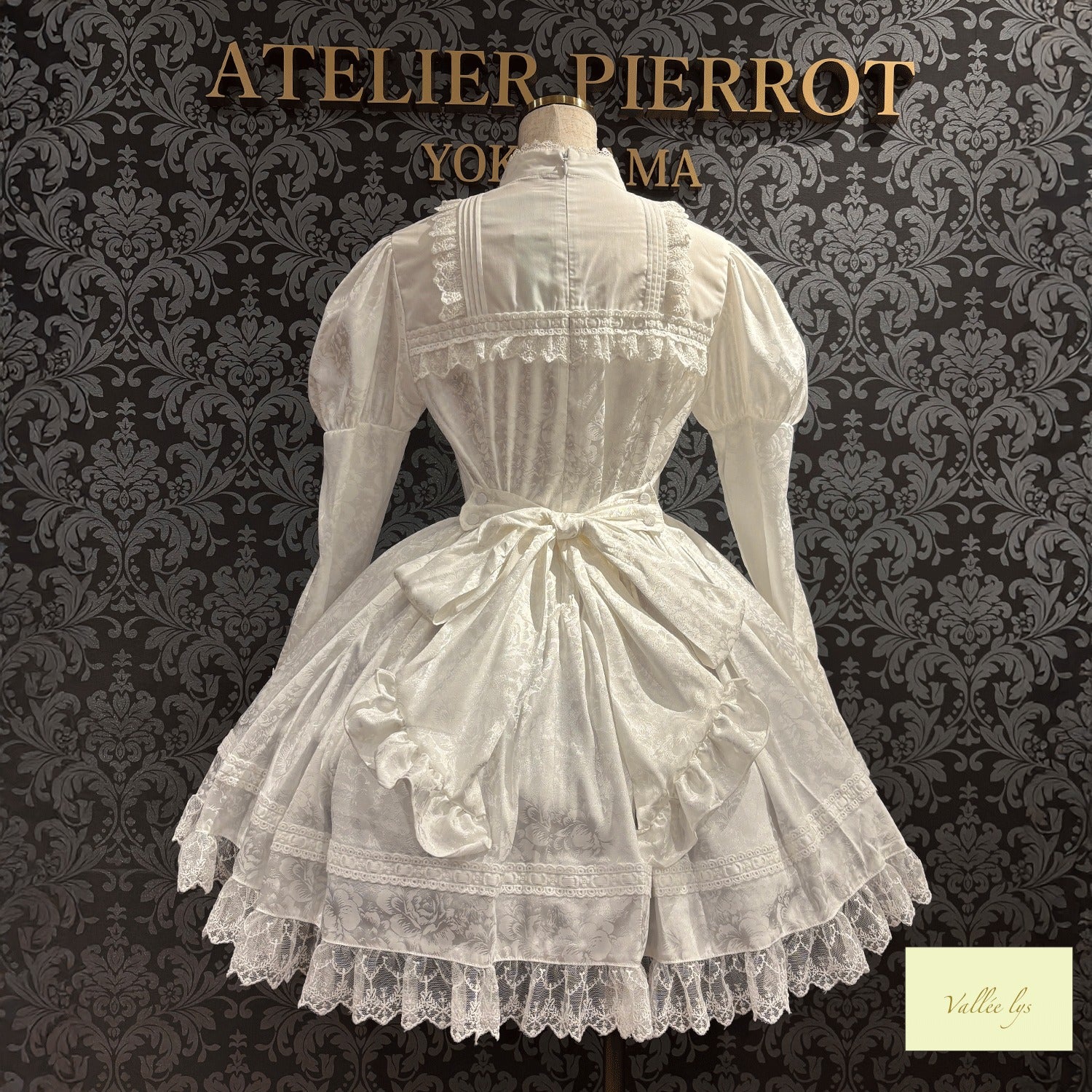 A mini dress decorated with delicate rose jacquard and ladder lace.