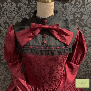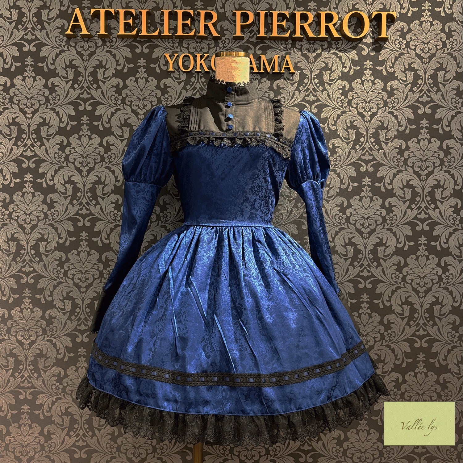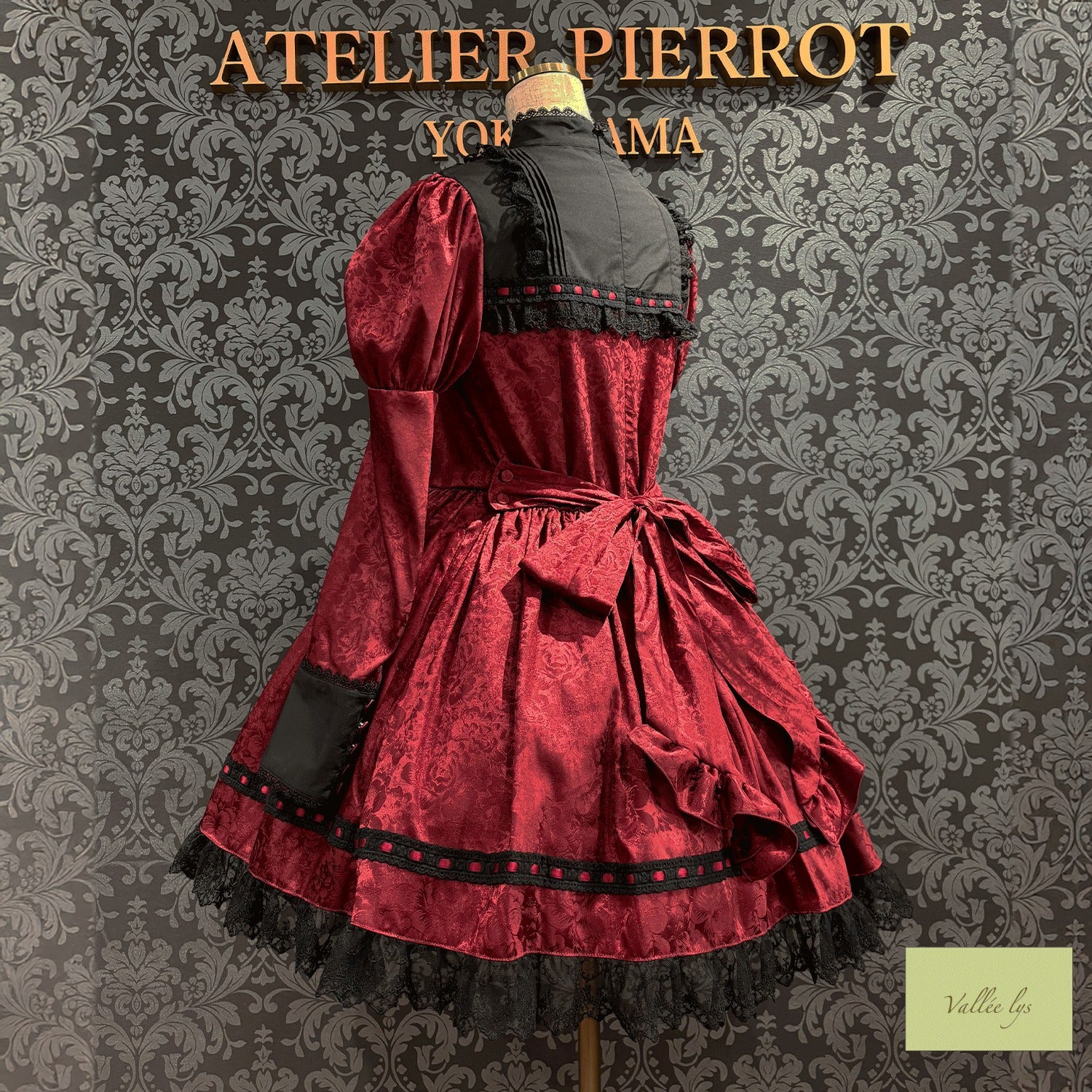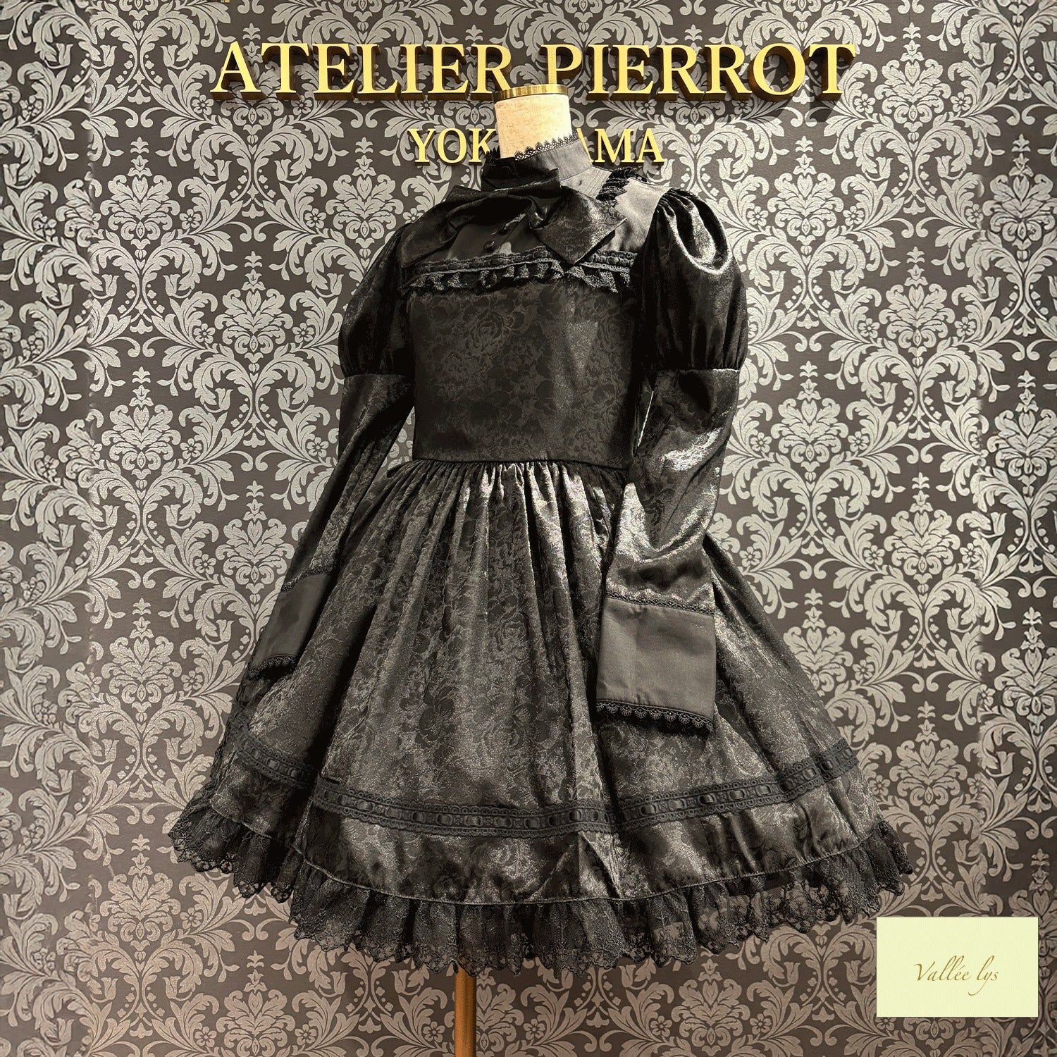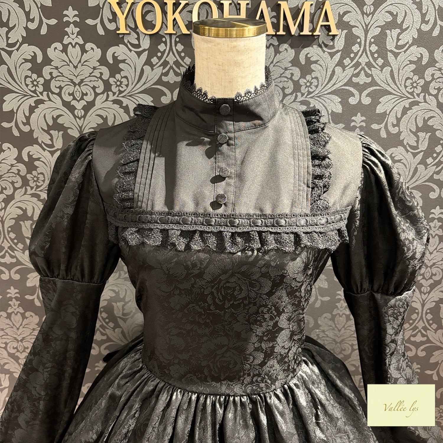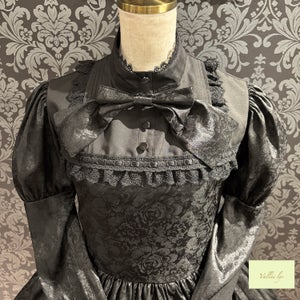 A mini dress decorated with delicate rose jacquard and ladder lace.