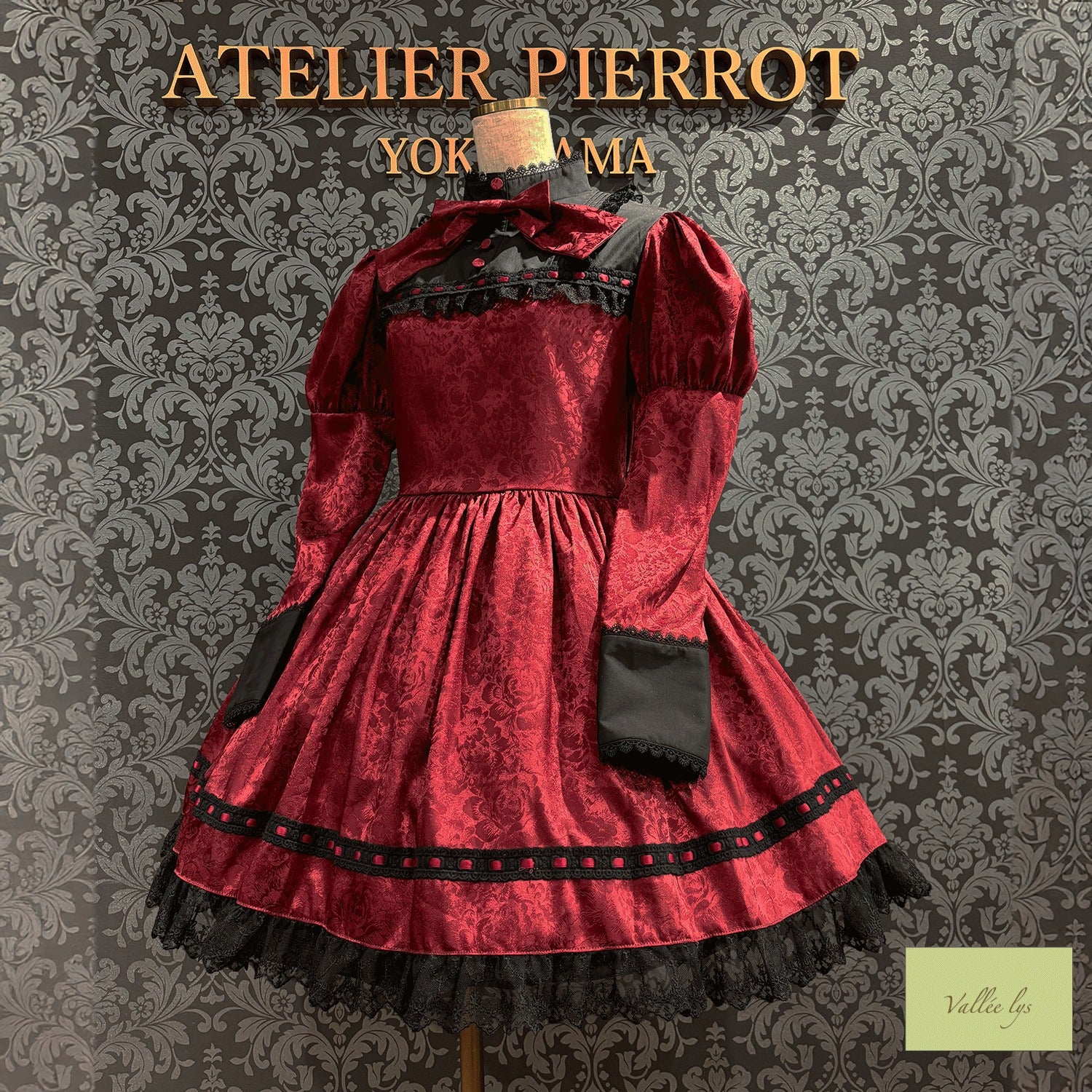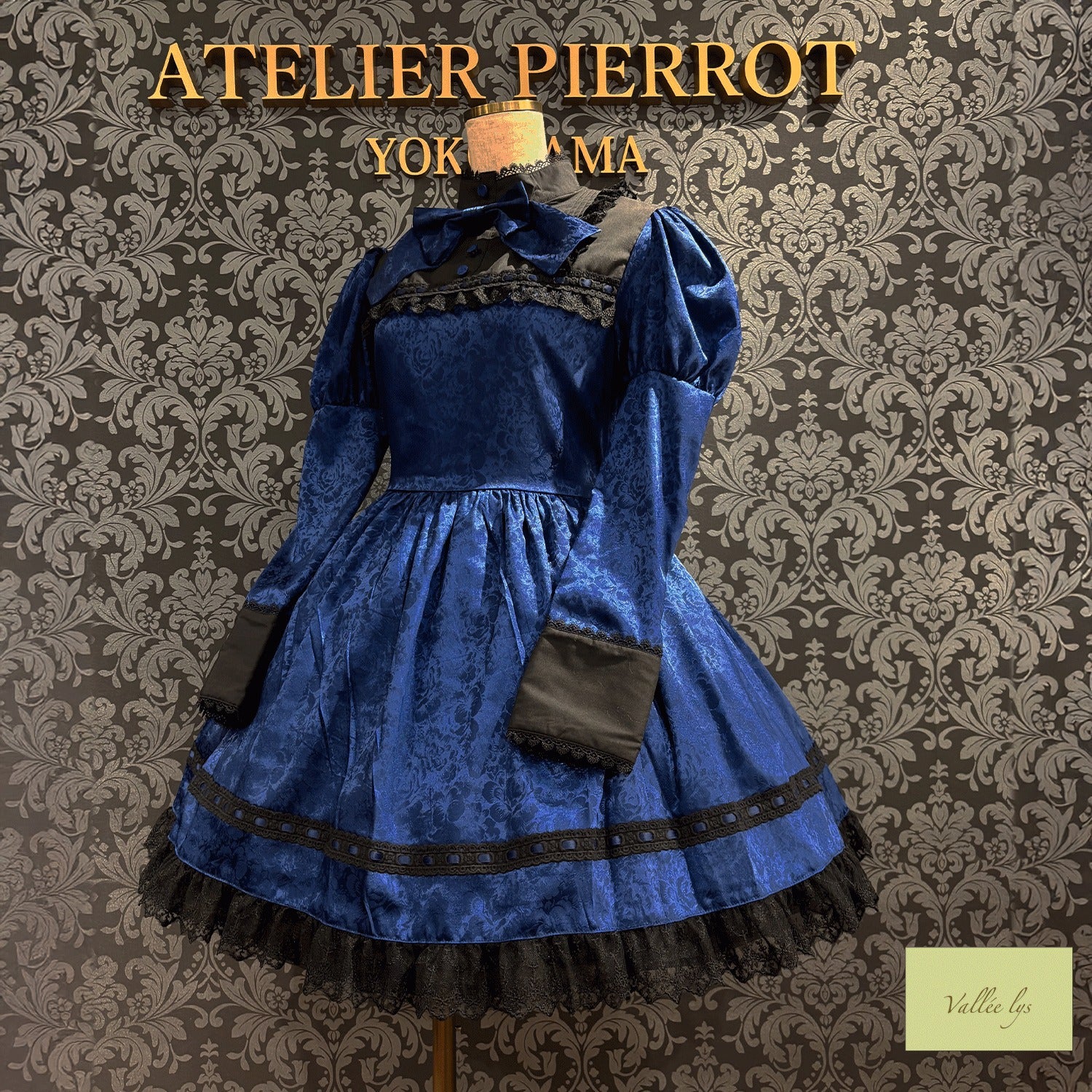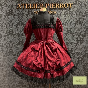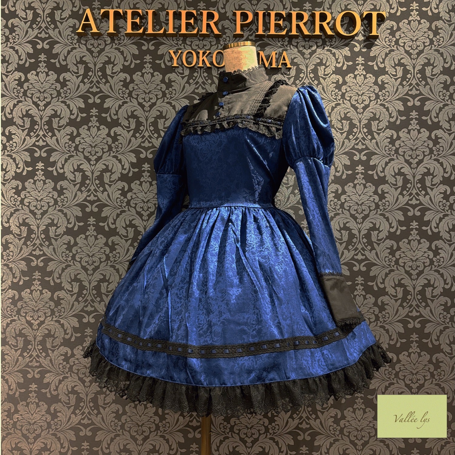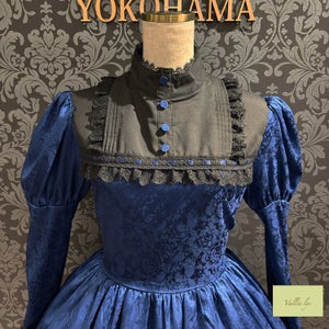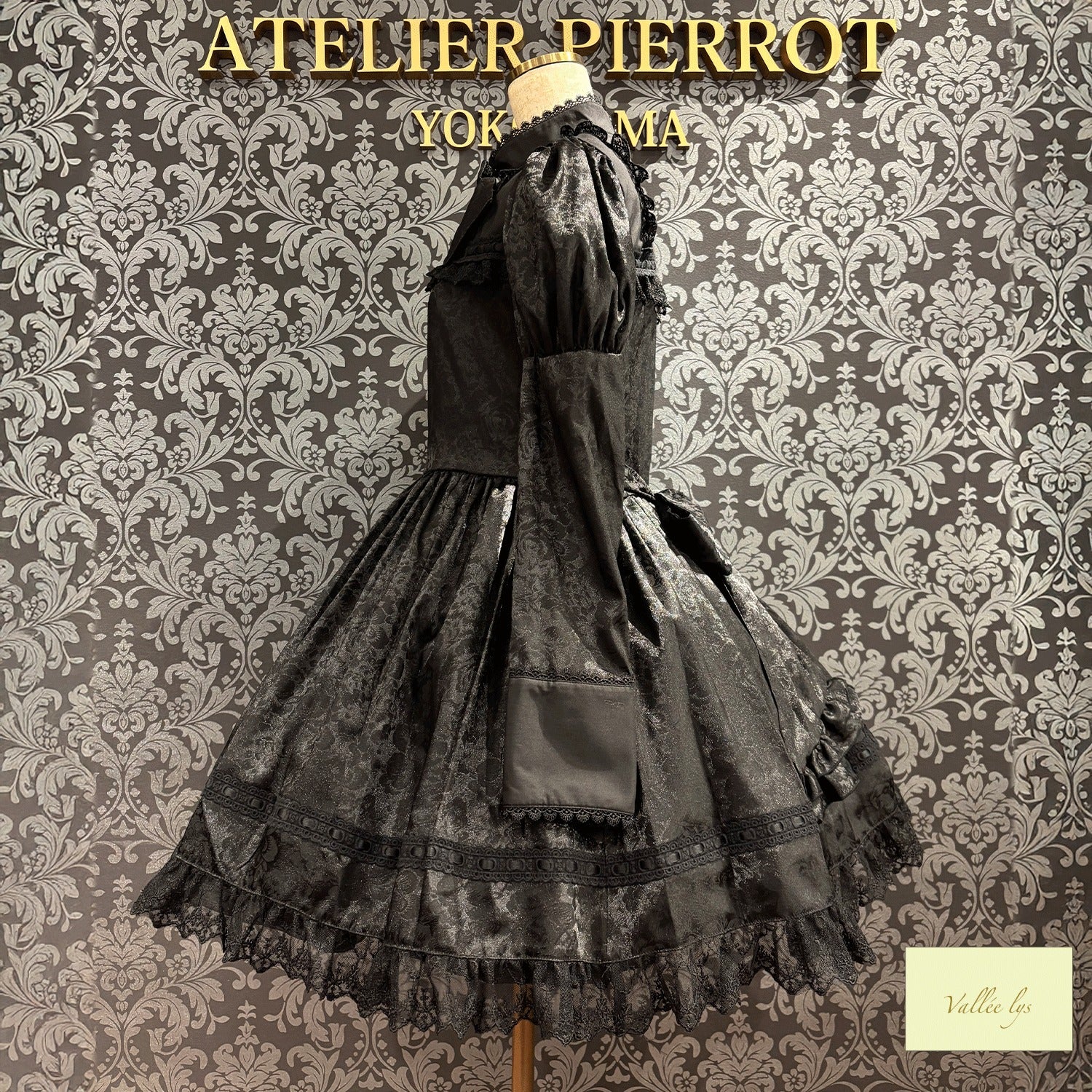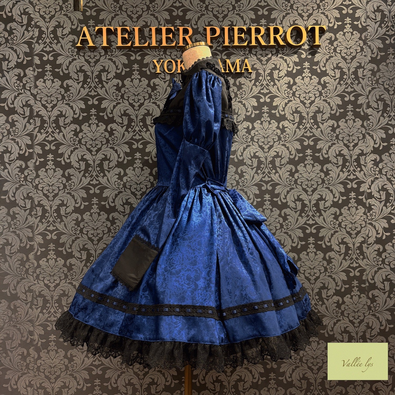 A mini dress decorated with delicate rose jacquard and ladder lace.