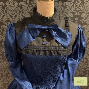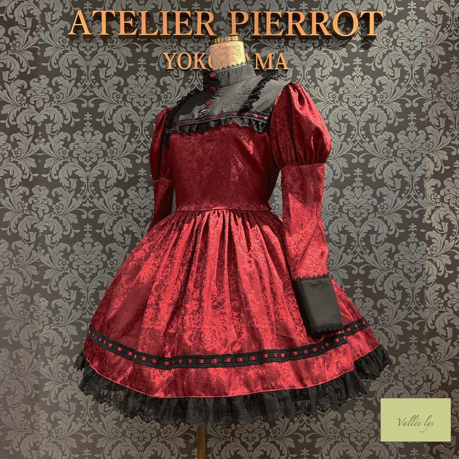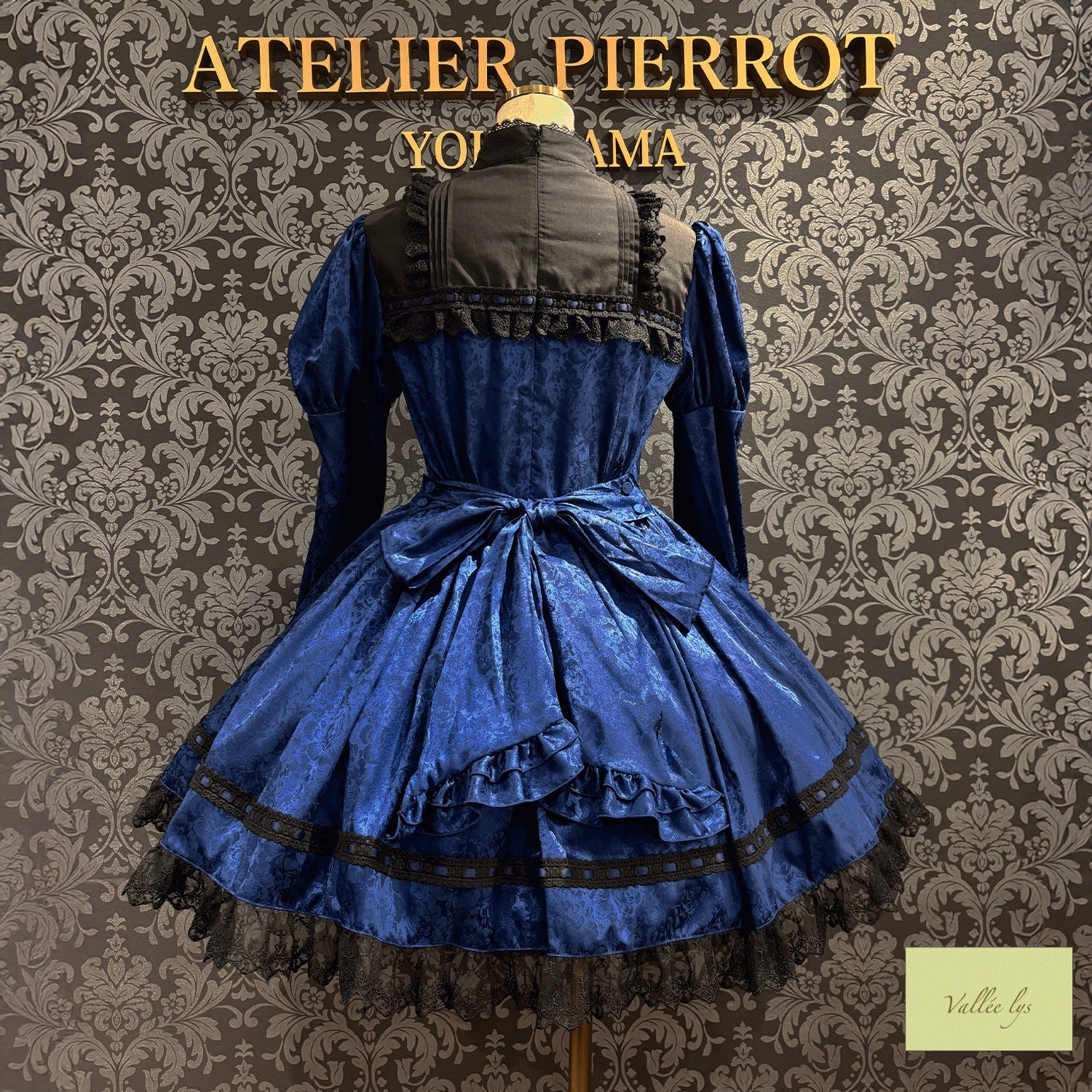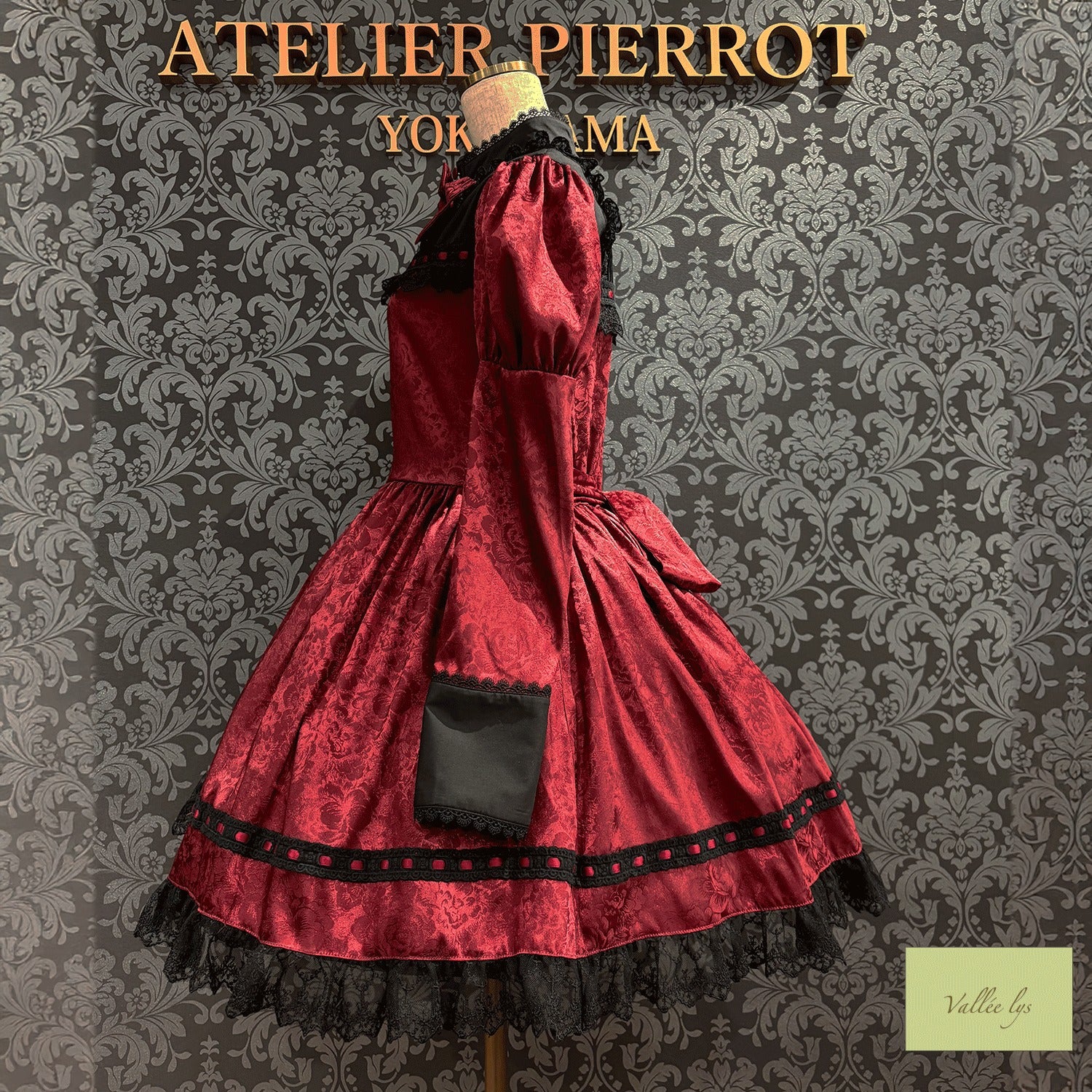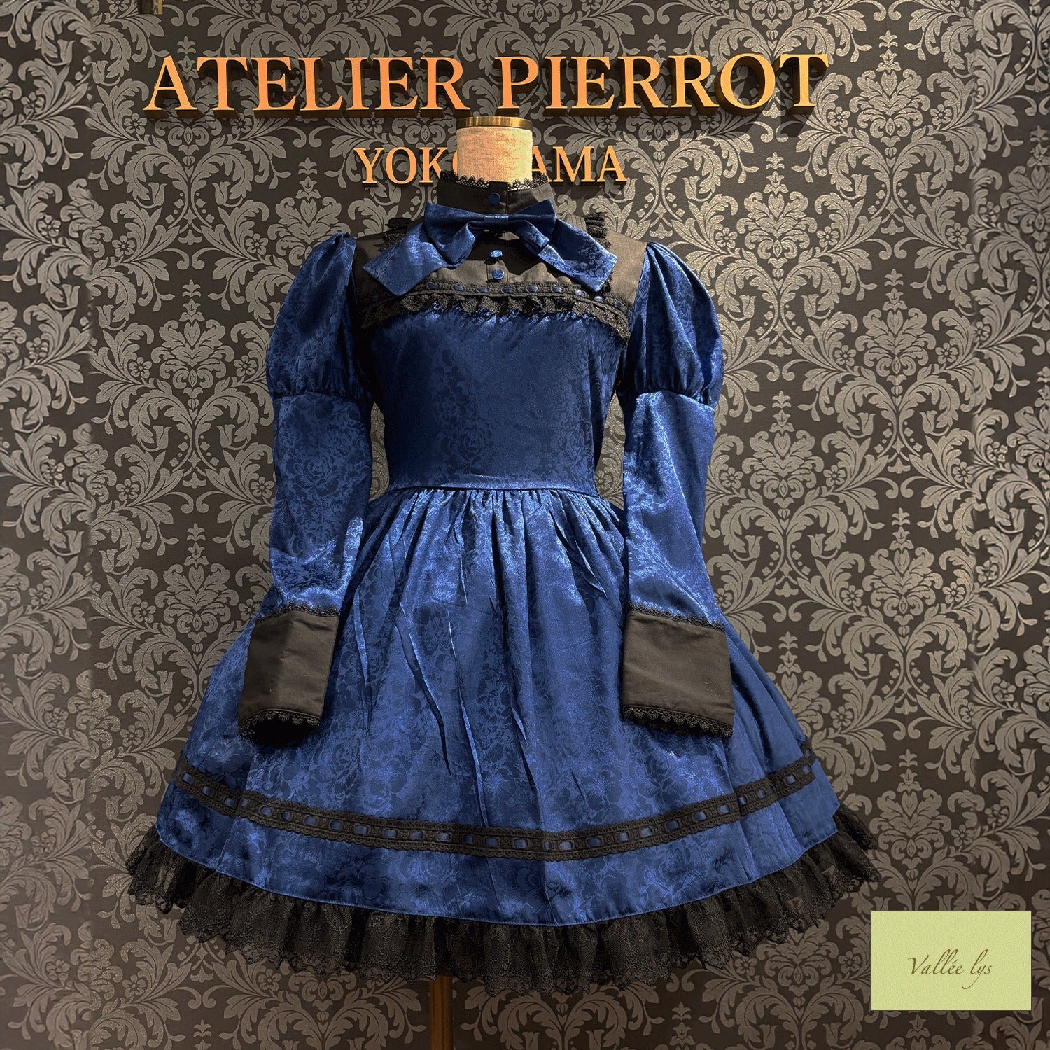 A mini dress decorated with delicate rose jacquard and ladder lace.