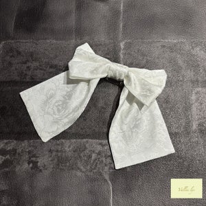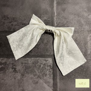 The ribbon brooch is removable.