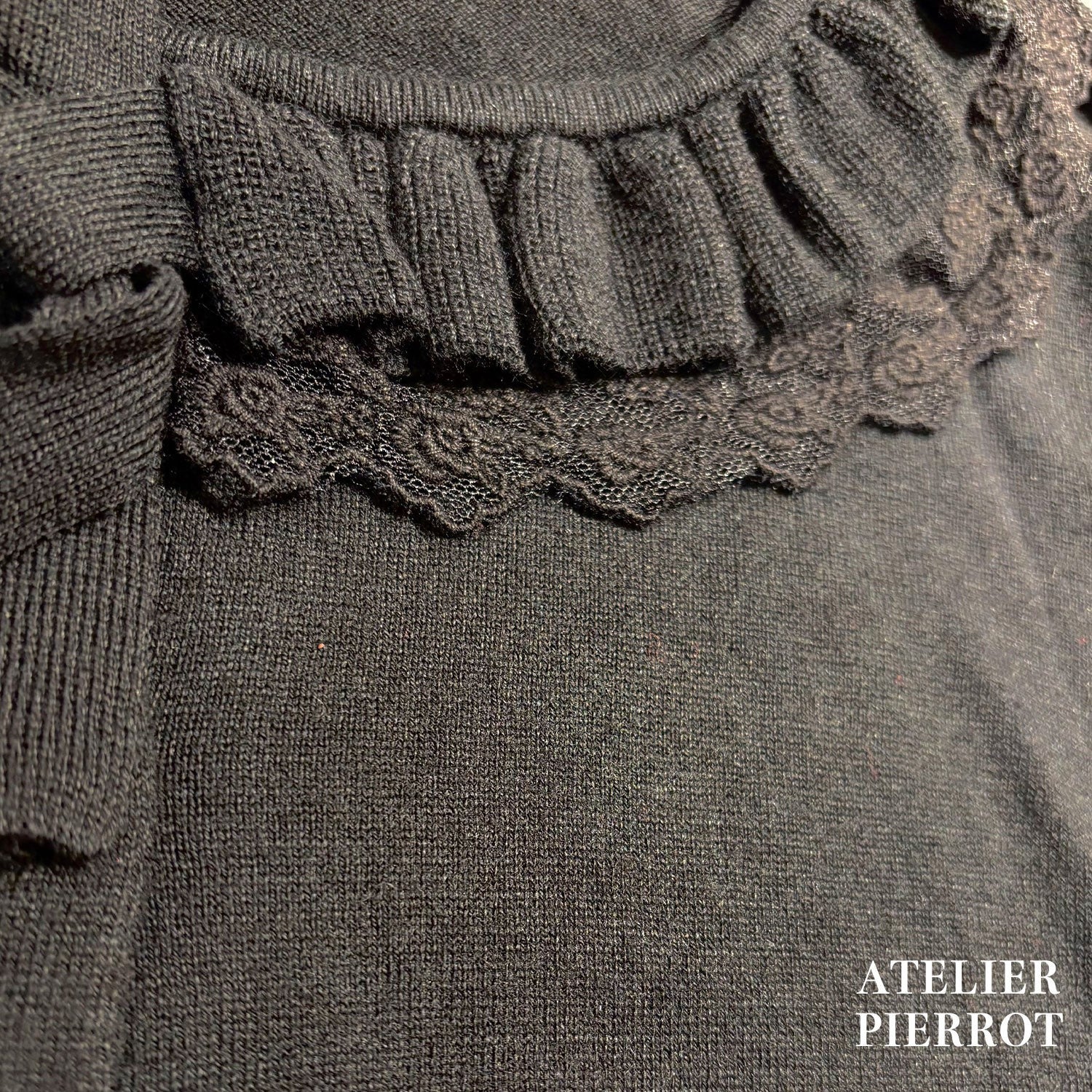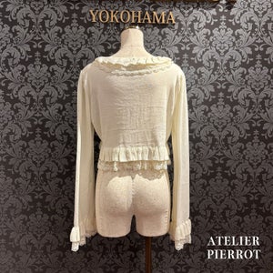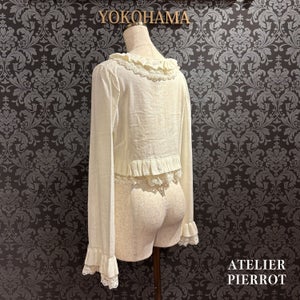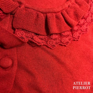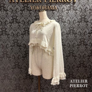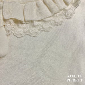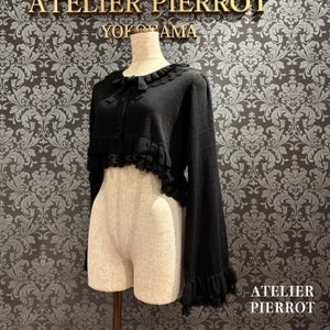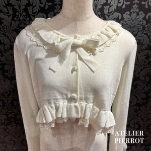 This knit cardigan features elegant frills and ribbons that will catch your eye. It is lightweight and comfortable to wear, making it perfect for the transition between seasons.