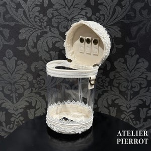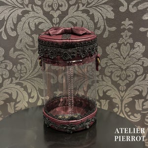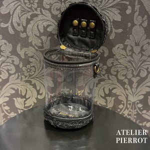comes with an adjustable shoulder strap, allowing you to use it as a pouch.The inside of the lid has a snap button that allows you to hang and secure stuffed toys or key chains using a ball chain or string, which is a great feature!We're sure there are many people out there who are looking for a plush pouch with a design that goes well with Gothic Lolita!