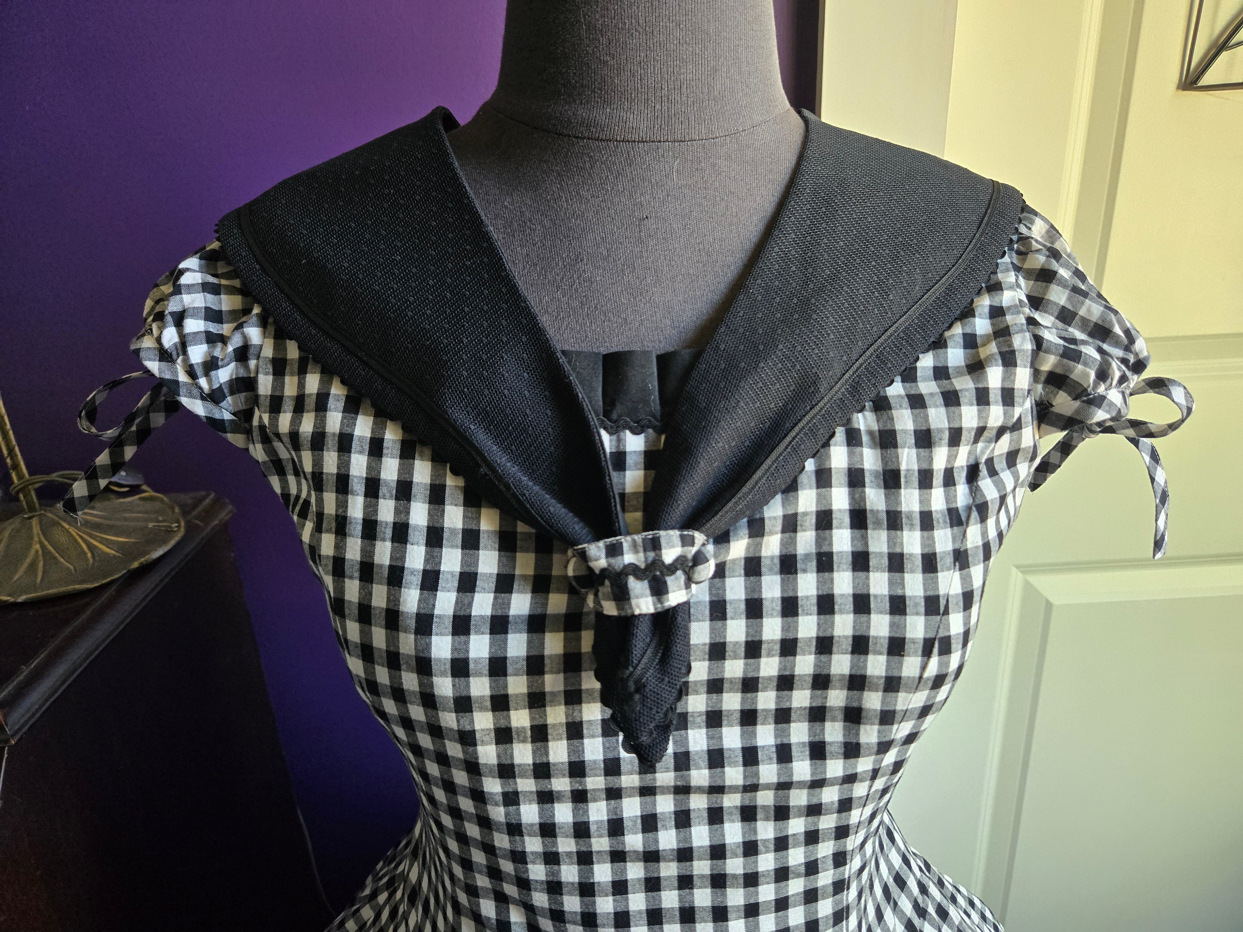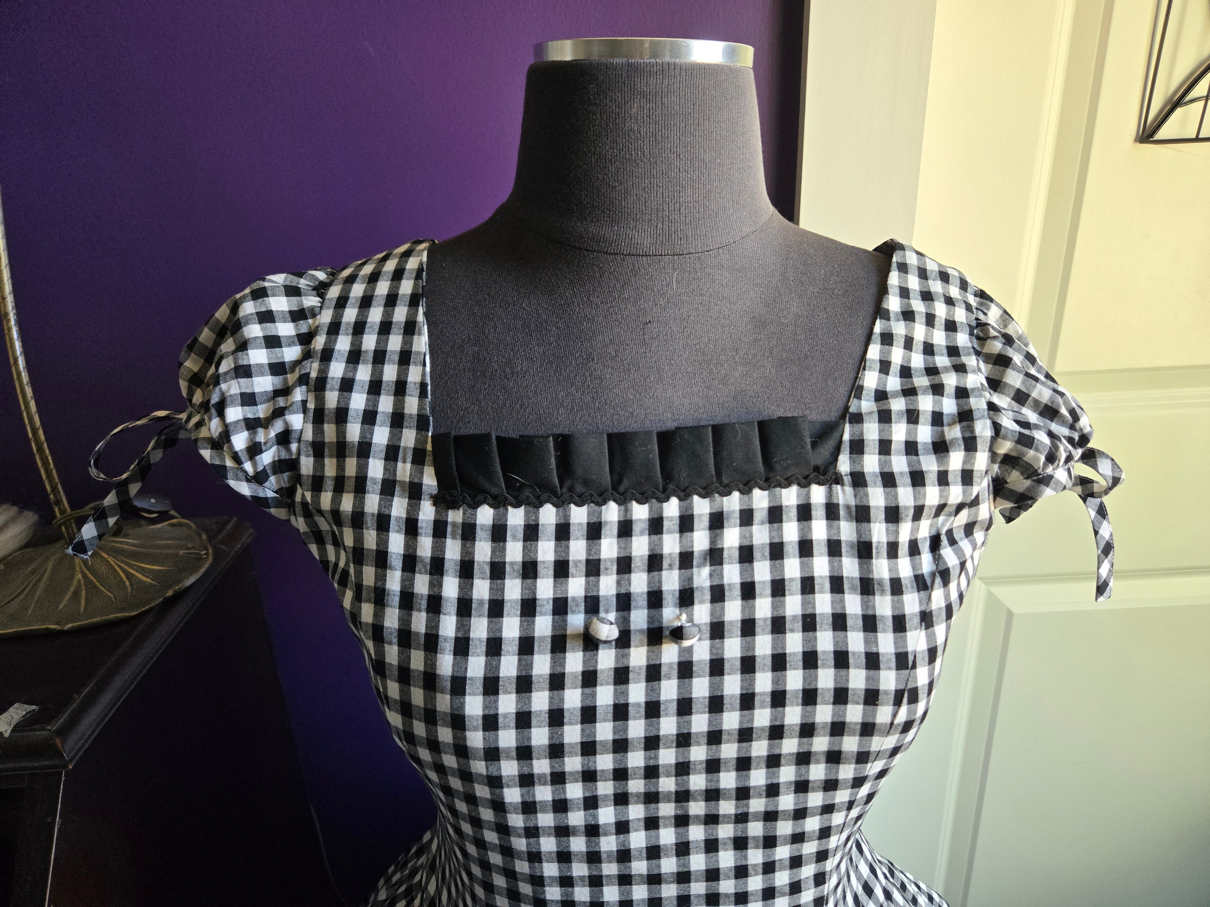 Outer Fabric: 100% Cotton 50 Yarn Dyed Broadcloth Gingham Lining: 100% cotton broadcloth Dot tulle Trim
